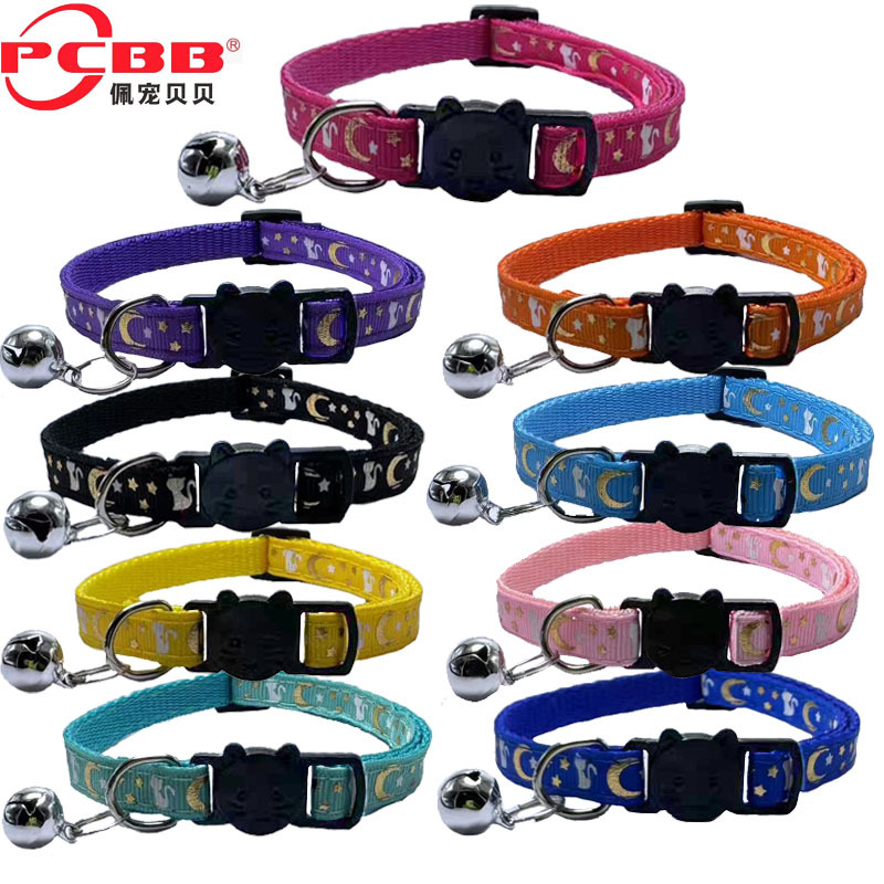 Mascotas estampado lunar estrellas collar gato collar de seguridad nocturna separado collar gato collar mascotas al por mayor