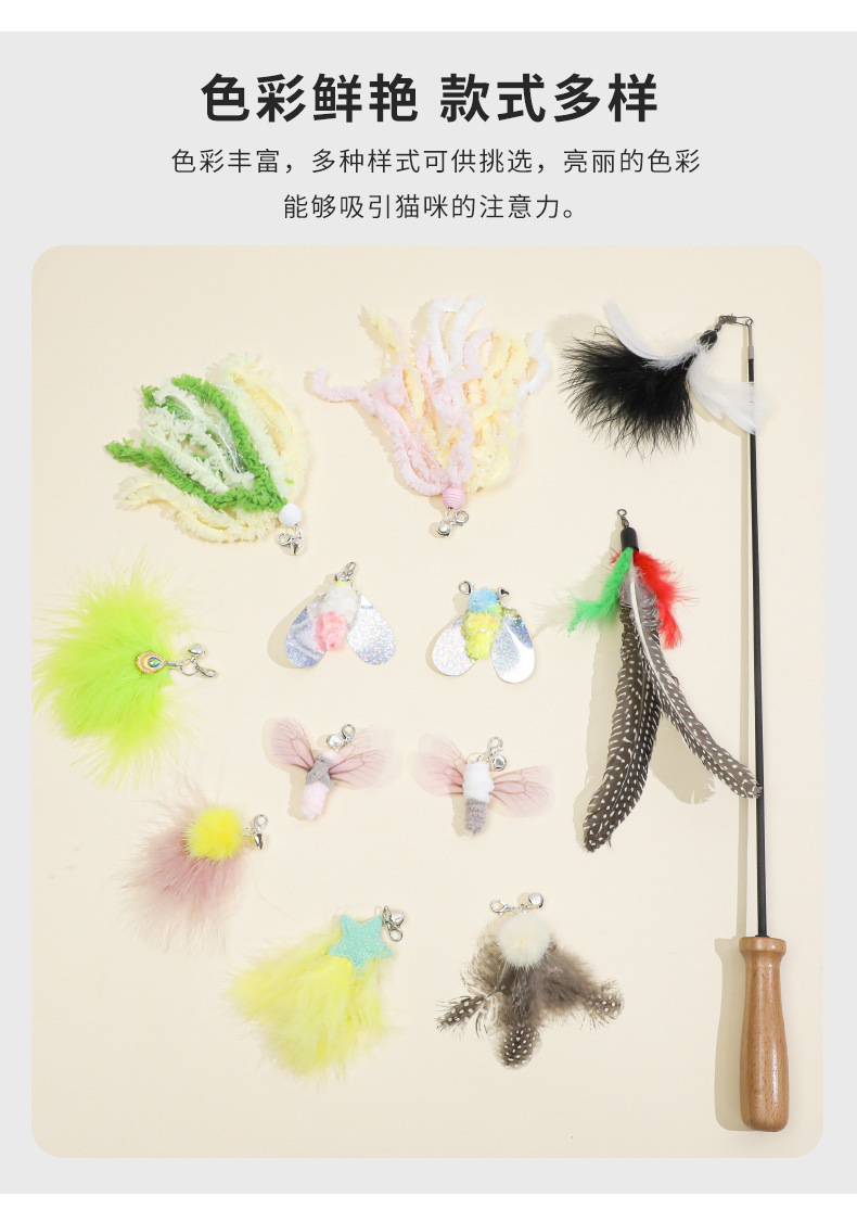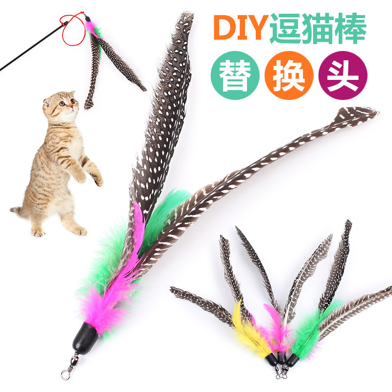 Perla pluma divertido gato palo cabeza de reemplazo al por mayor hecho a mano DIY gato juguete gato interactivo divertido gato palo varilla Accesorios