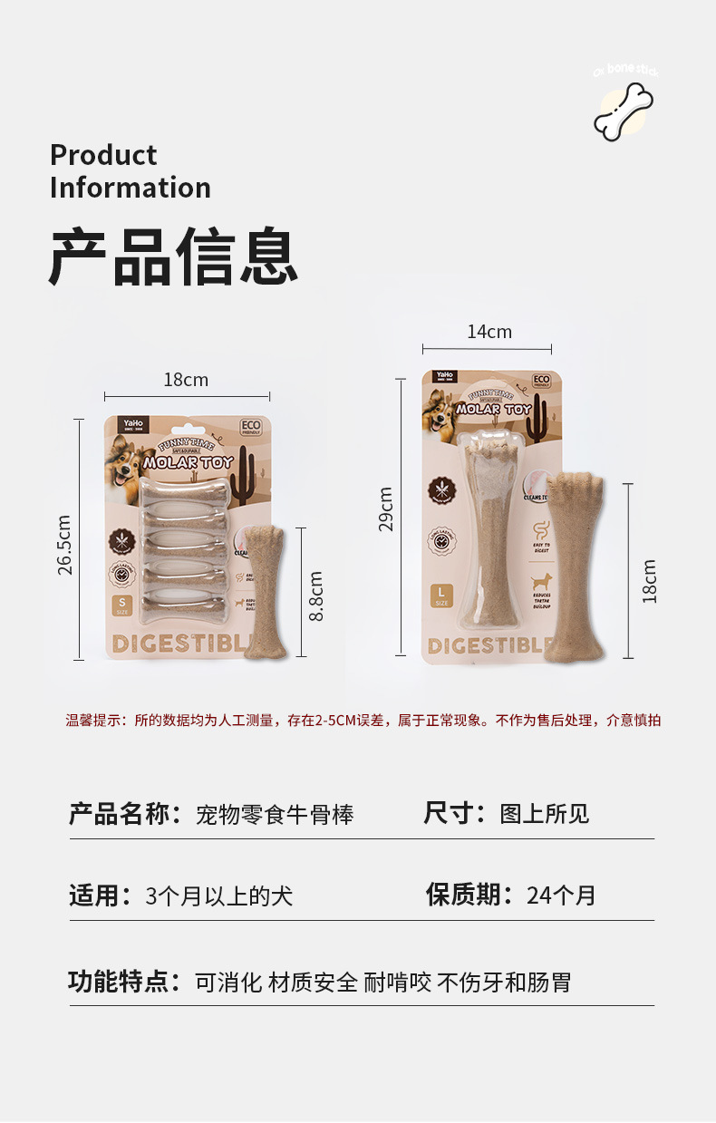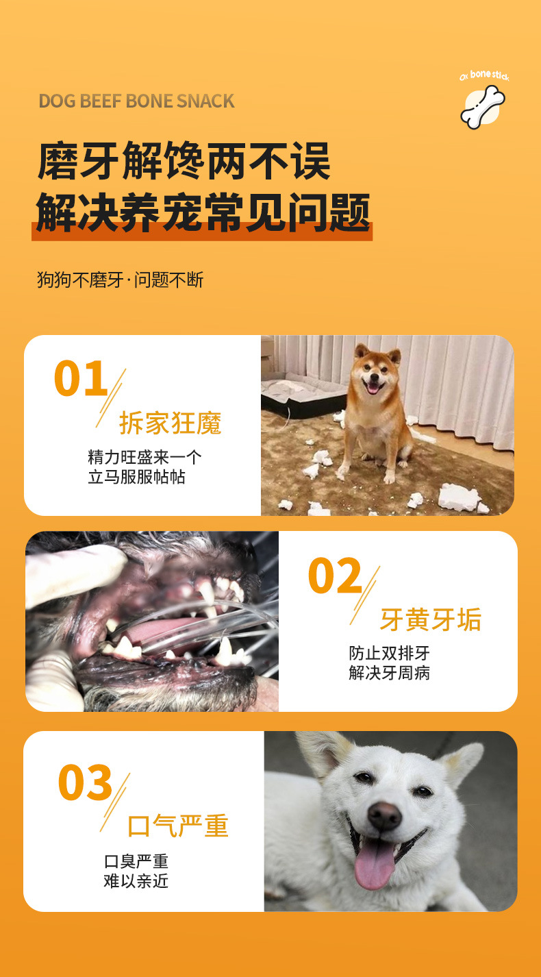 Aperitivos para perros Barra de ternera Bone Palo molar huesos grandes dientes molares Suplemento de calcio resistente Golden Retriever Entrenamiento de perros pequeños medianos y grandes al por mayor
