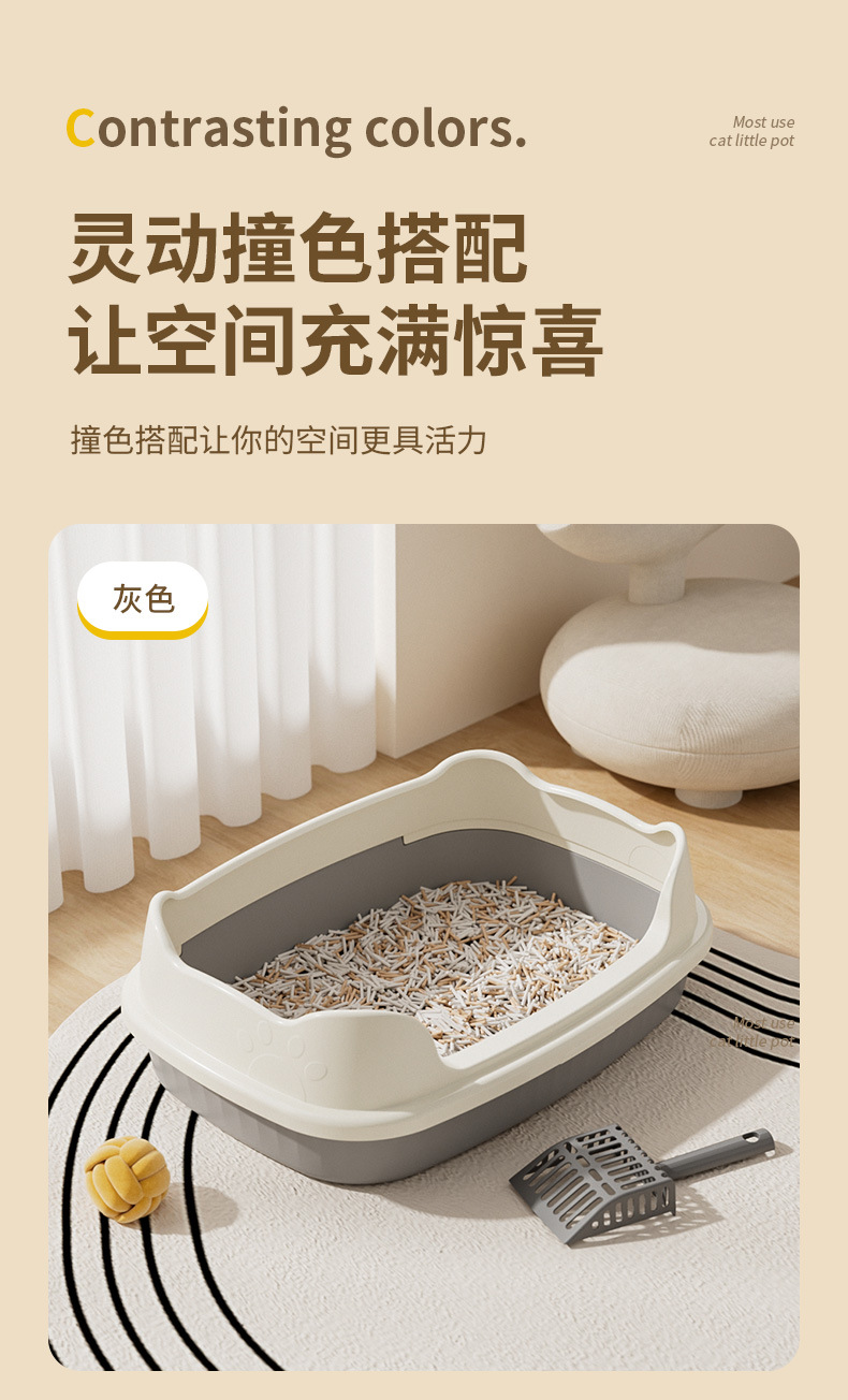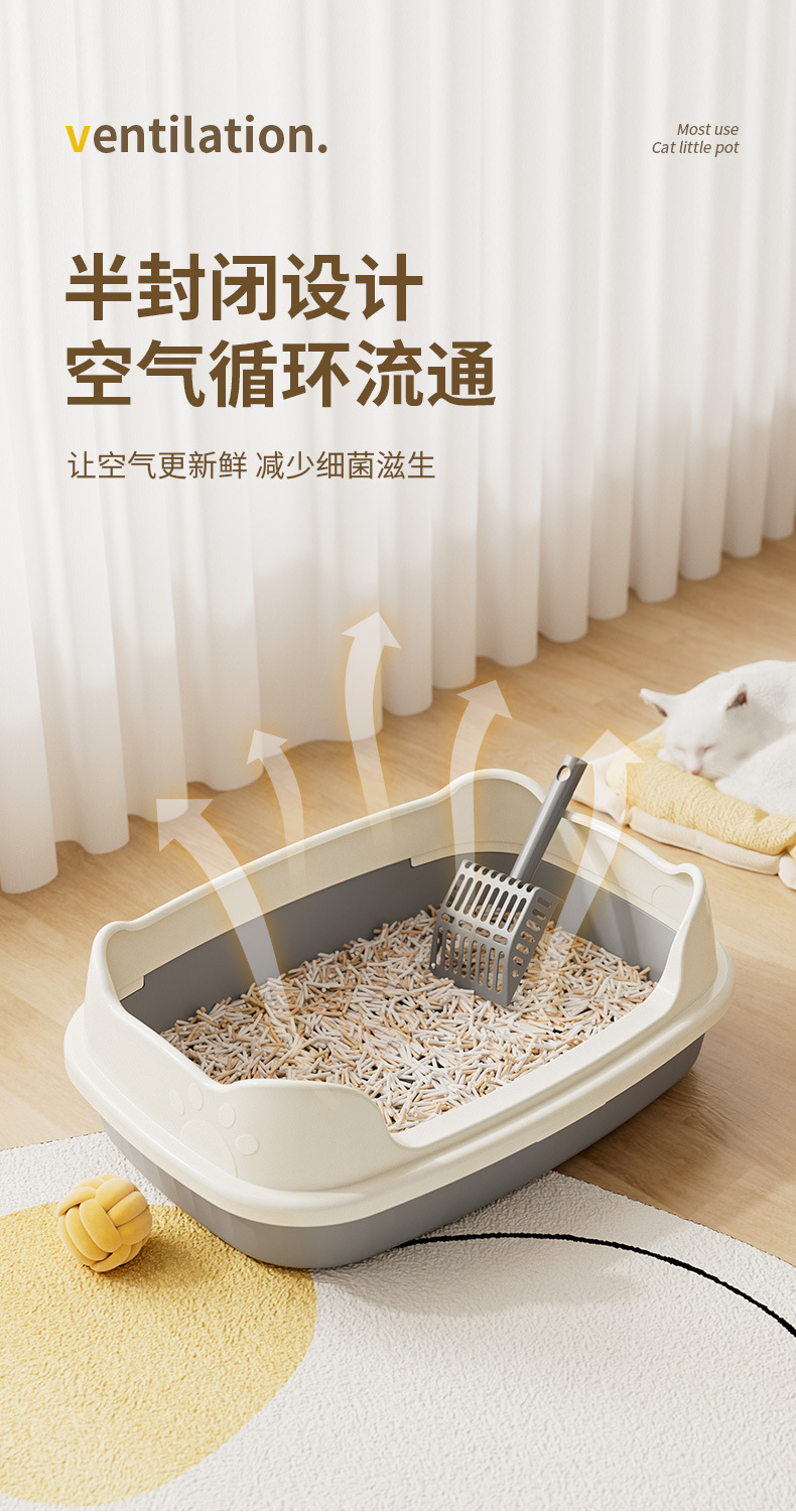 Lavabo de arena para gatos de gran tamaño, semicerrado, abierto, alto, anti-salpicaduras, inodoro para gatos, lavabo de arena para gatos extra grande, lavabo para heces para gatos