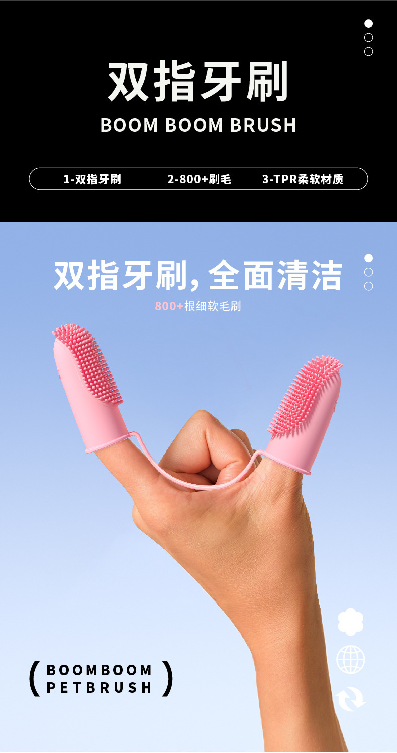 Cepillo de dientes doble dedo para mascotas-rosa