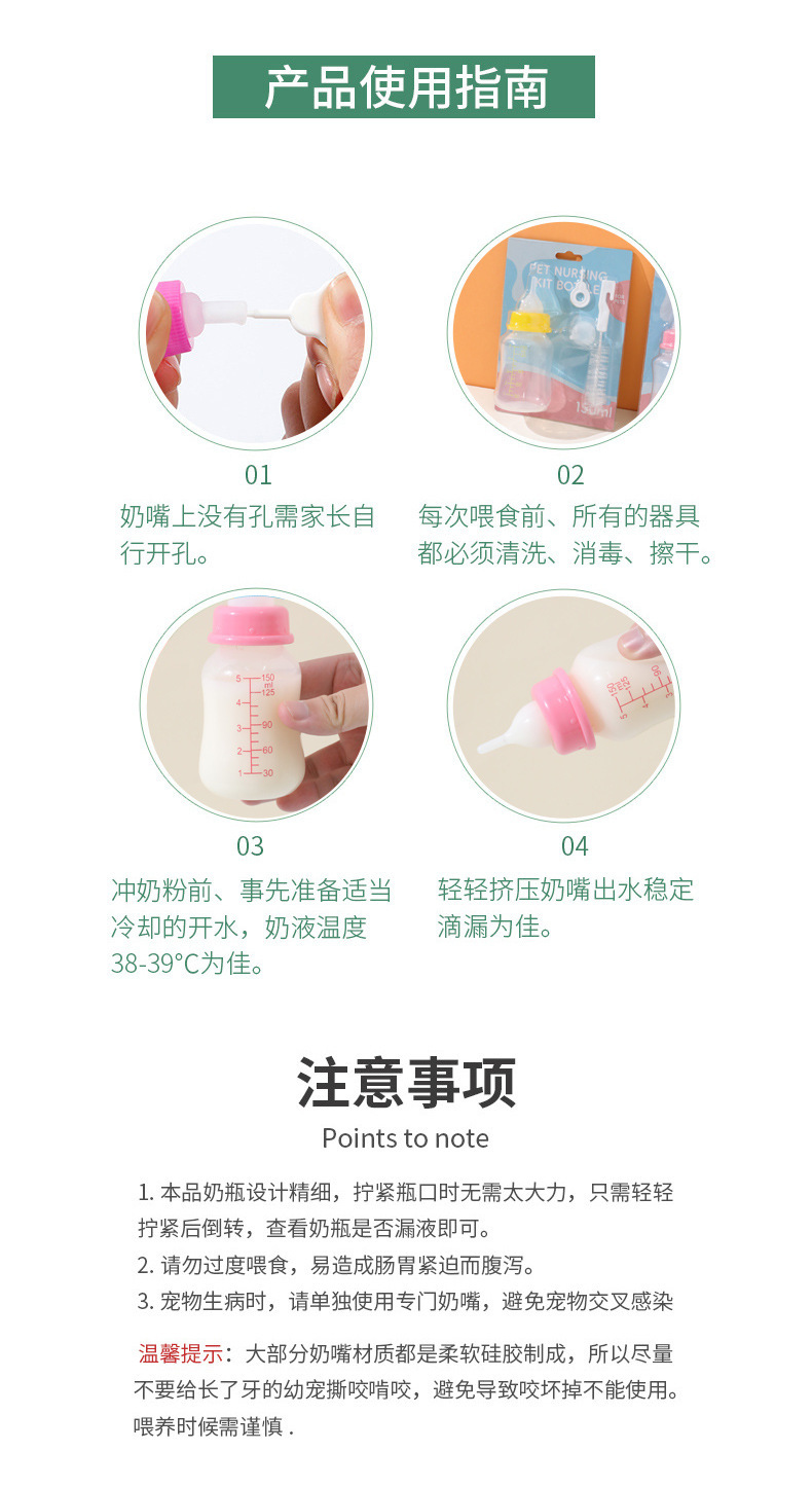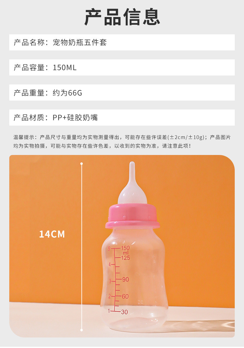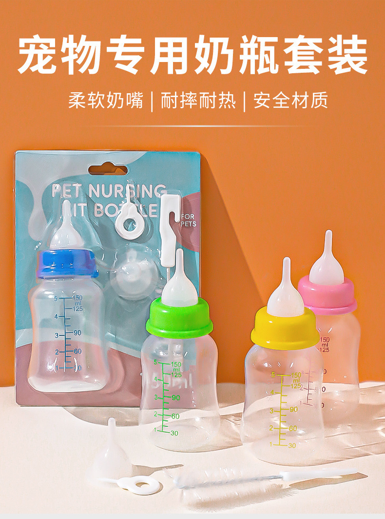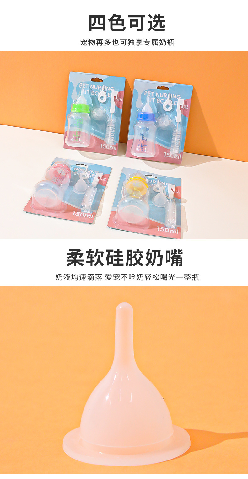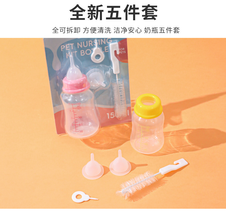 En stock al por mayor botella de alimentación para mascotas de calabaza grande 150ml reemplazable pezón lavado cepillo traje cachorro botella de alimentación