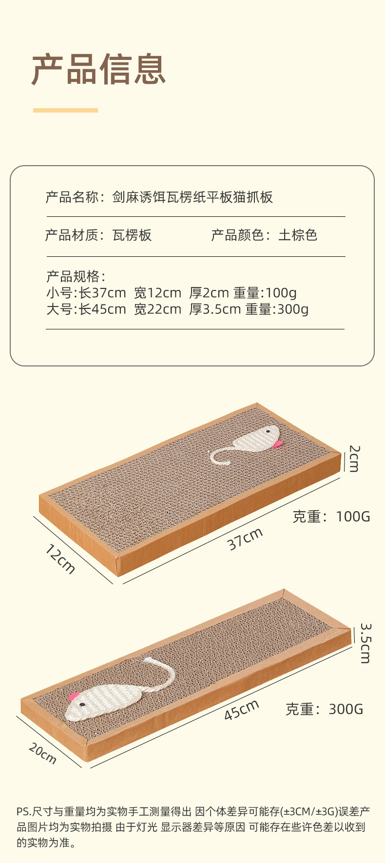 Tablero de agarre de gato al por mayor Tableta de sisal Cebo de ratón Papel corrugado Garra de pulido de gato Almohadilla de agarre de gato Juguete de gato divertido