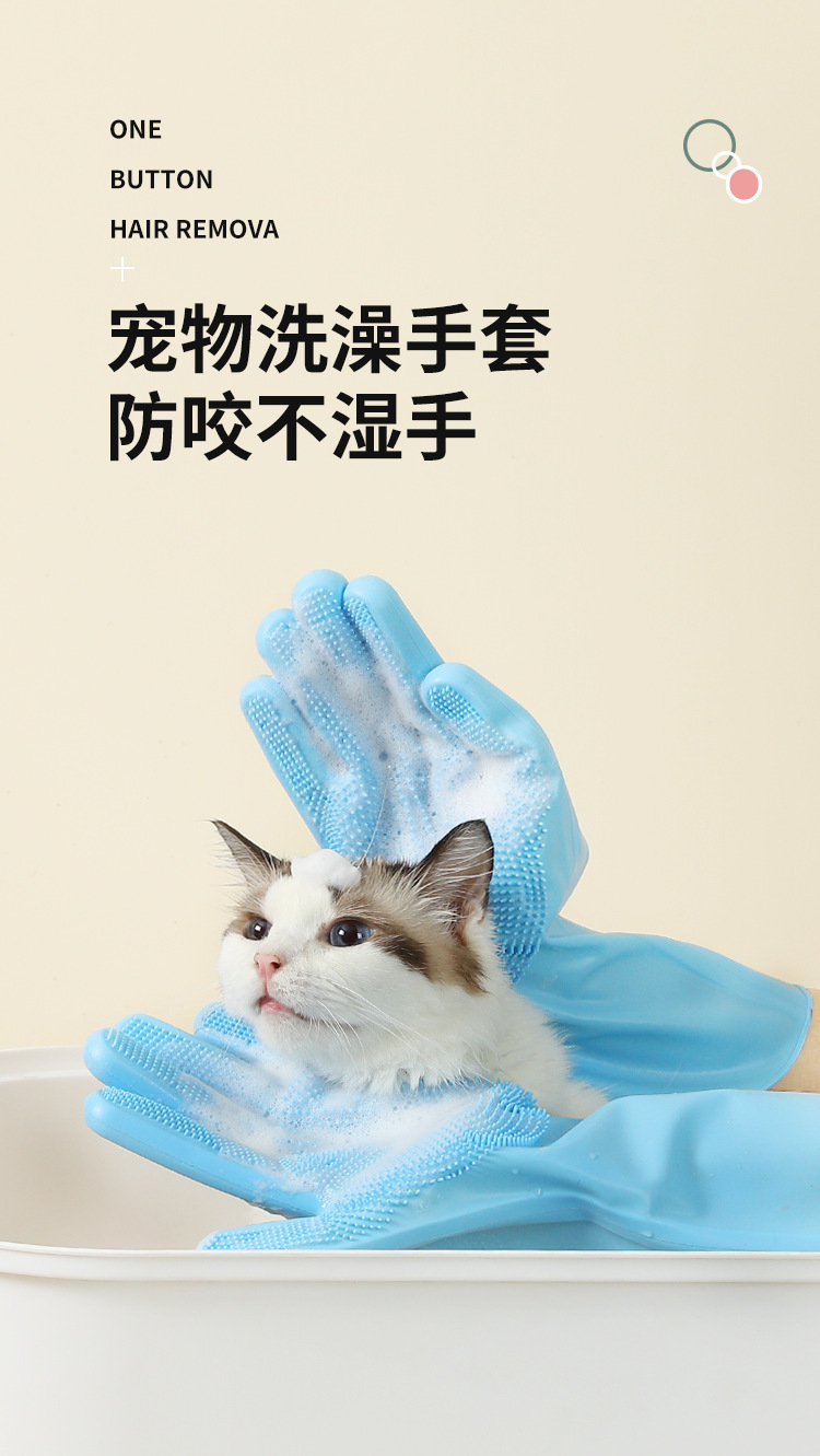 Guantes de baño para mascotas para perros y gatos, artefactos de baño de peluche de oro, cepillo de masaje de peluche de peluche de peluche, anti-rascar y anti-mortez