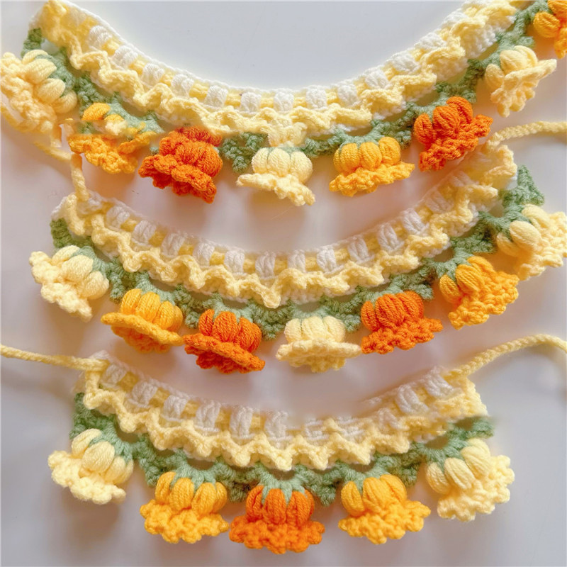 Pet tejer orquídeas toallas de saliva para gatos perros ins viento collar adornos de fotos