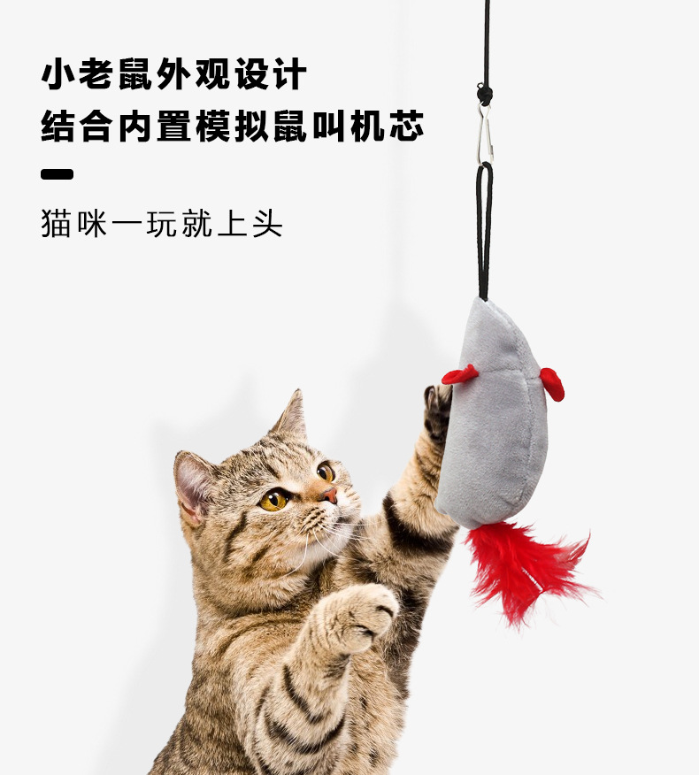 Tiktok popular colgante de sonido ratón de peluche gato de juguete llamando ratón auto-Hola divertido gato palo divertido gato juguete en stock