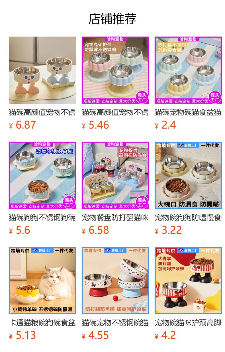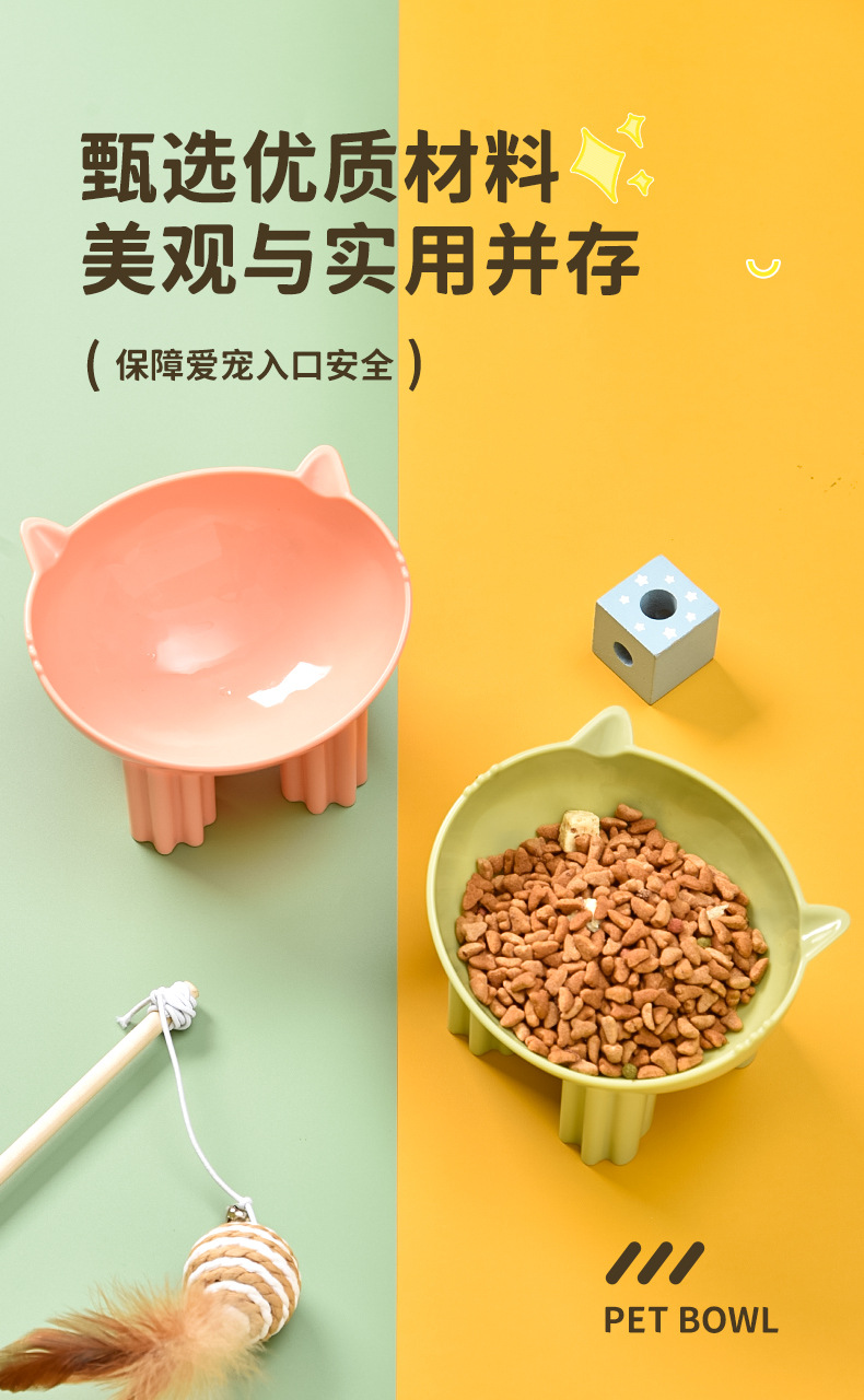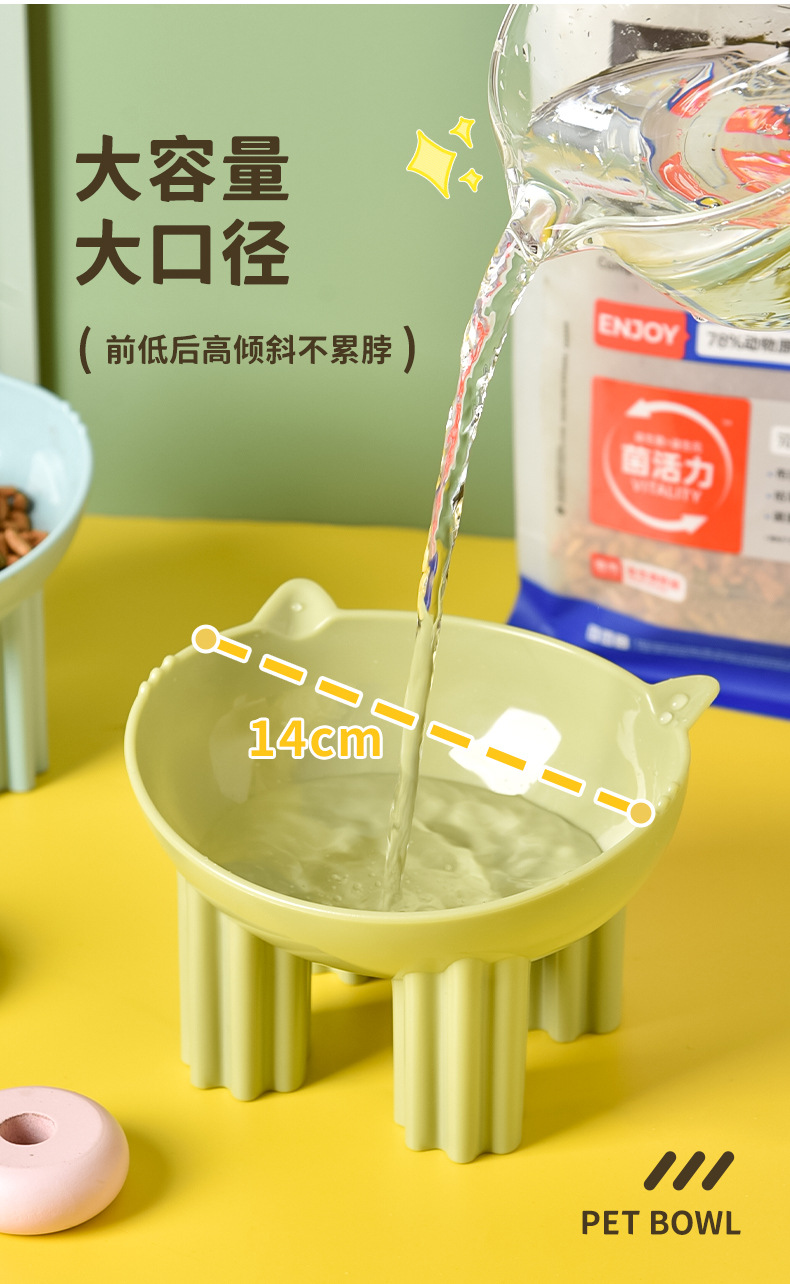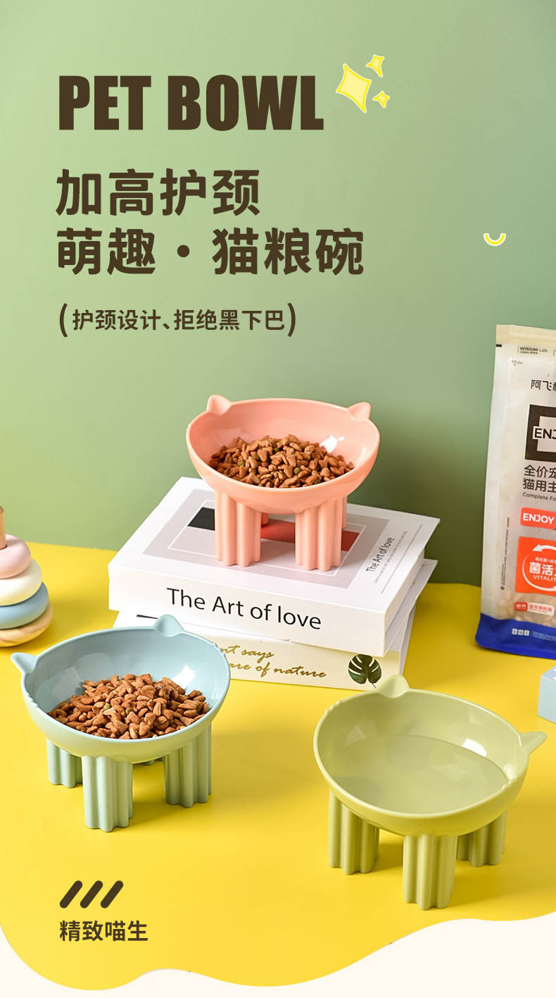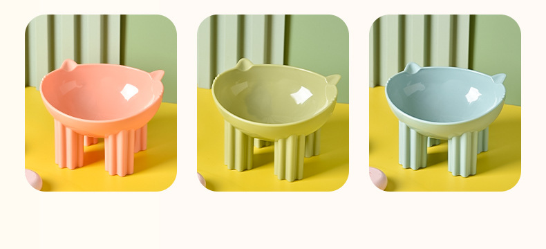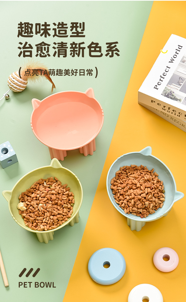 Tazón para gatos, cuello para gatos, anti-deslizante, anti-volque, tazón para perros, caricatura para gatos, inclinación para gatos, tazón para perros, al por mayor.