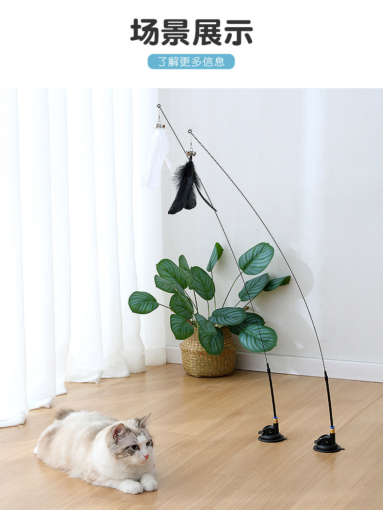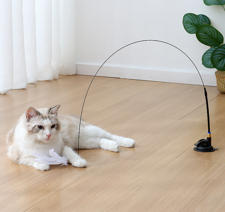 Juguete para gatos, varilla larga, ventosa de alambre de acero, palo para gatos divertido, artefacto para gatos automático perezoso, juguete para aliviar el aburrimiento