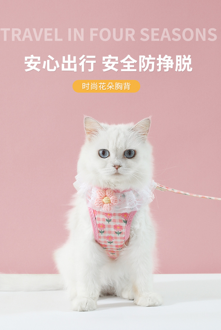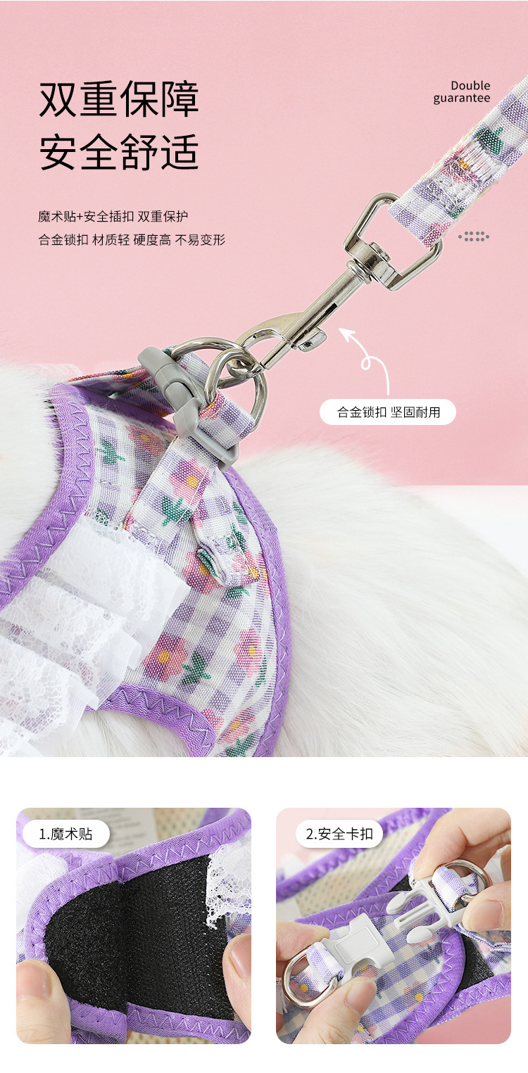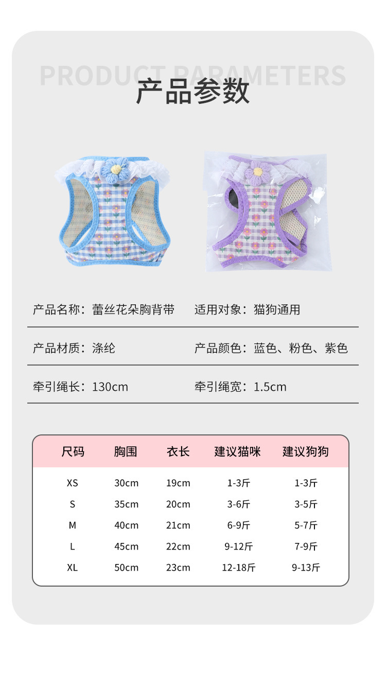 Cordón de tracción para mascotas, cordón de flores de encaje, cinturón de pecho para perros pequeños y medianos, perros, gatos y perros, cordón de perro ajustable para salir