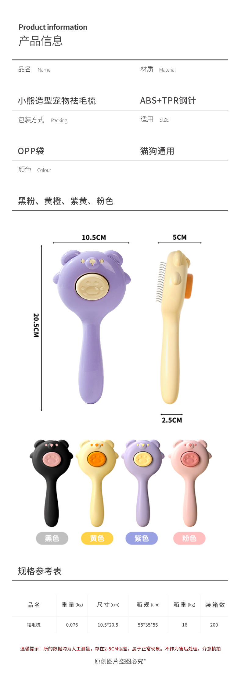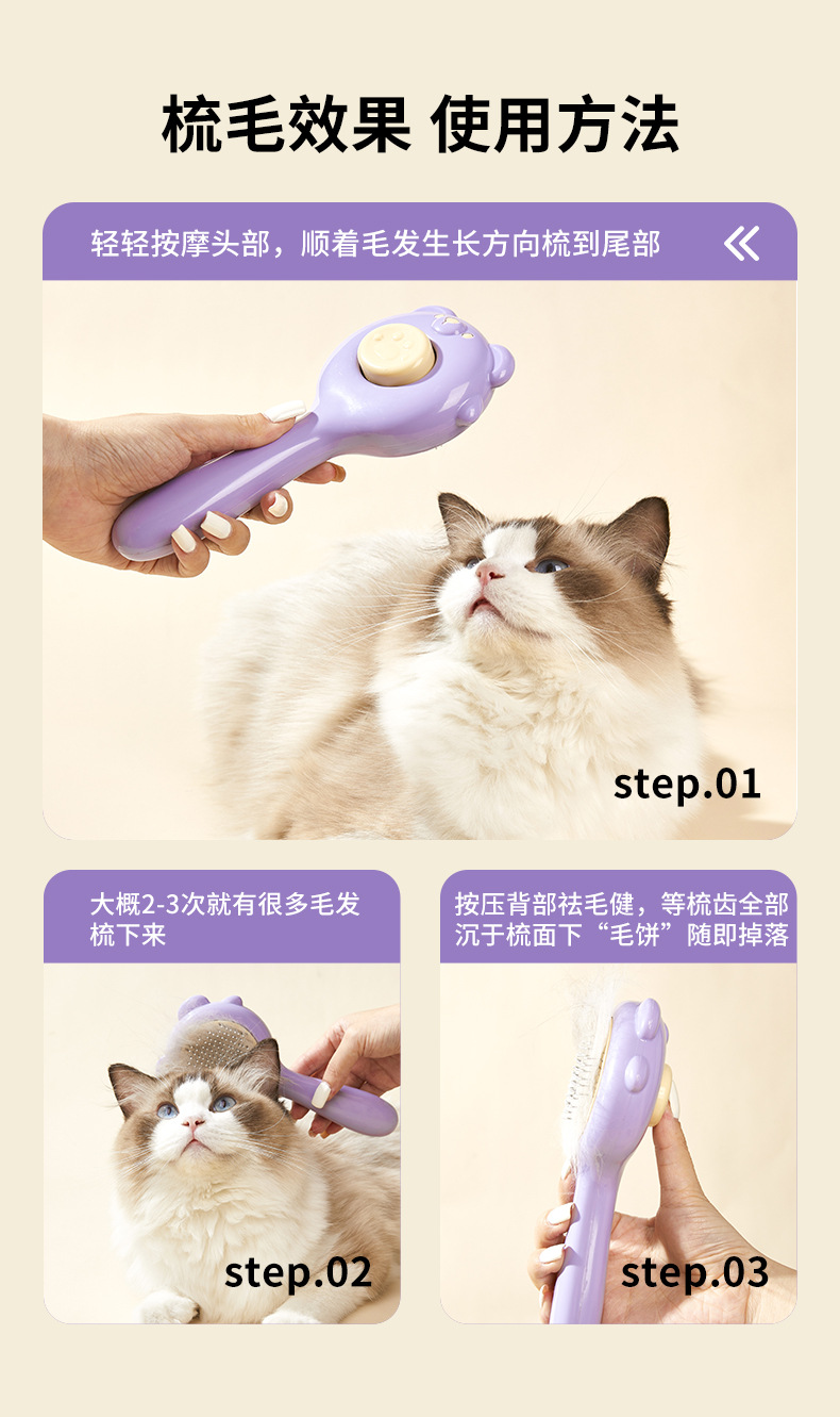 Peine para gatos, artefacto de depilación con una tecla, depilación automática portátil, peine para perros, cepillo para el hogar, suministros al por mayor