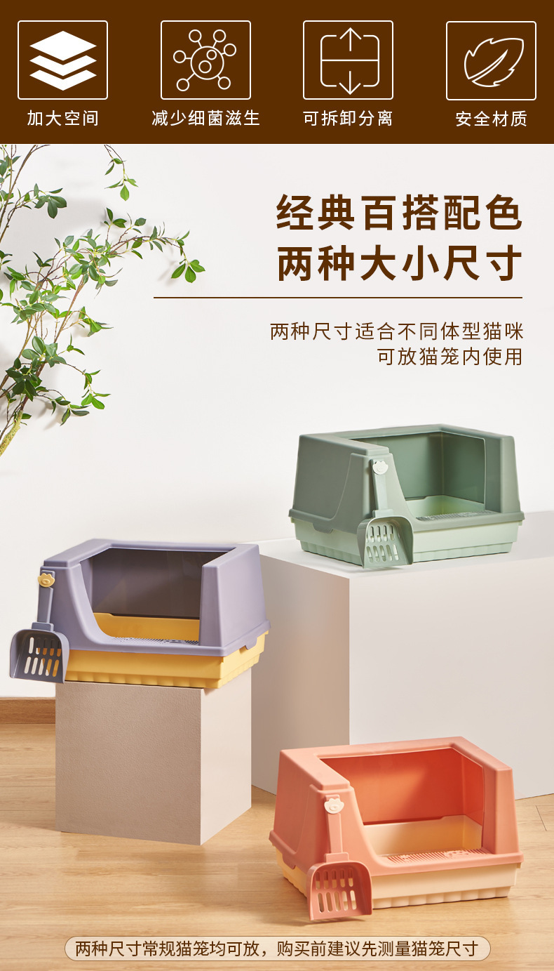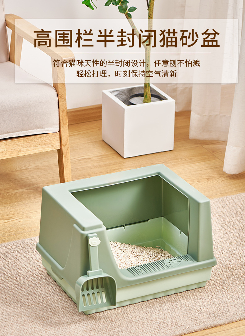 Caja de arena para gatos semicerrado desodorante de borde alto antisalpicaduras espacio súper grande Tipo de sala de baño para gatos caja de arena para gatos grande Nuevo