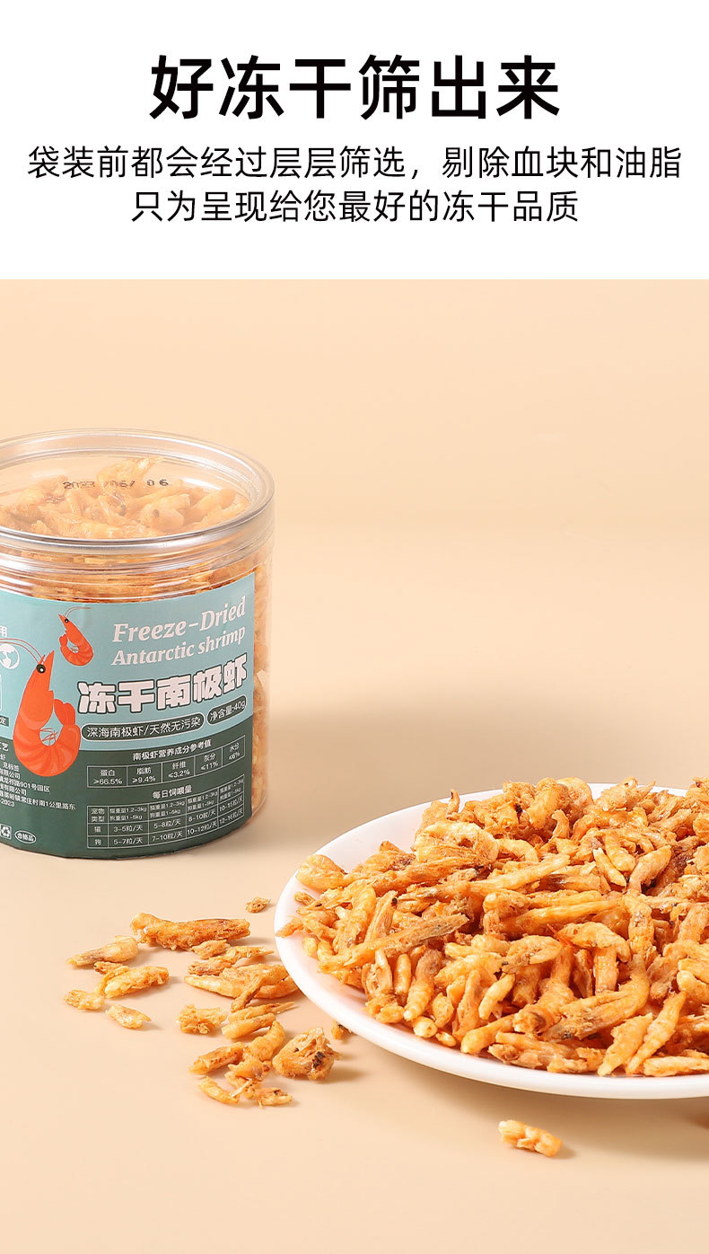 Snack congelado para gatos camarón antártico para gatos jóvenes nutrición de calcio para aumentar el peso, mejilla de cabello krill natural puro sin sal comida para gatos compañero