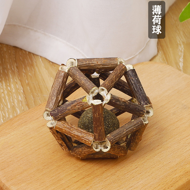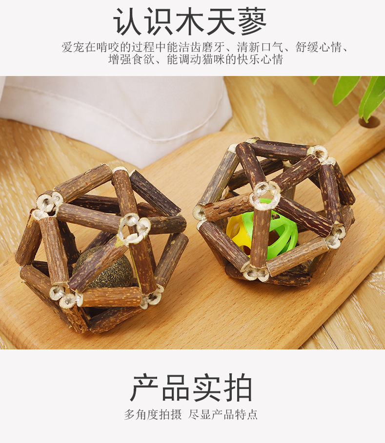 Bola de madera Polygonum catnip venta al por mayor palo de molienda de mascotas Bell bola tejida gato limpieza exquisita bola divertido gato juguete
