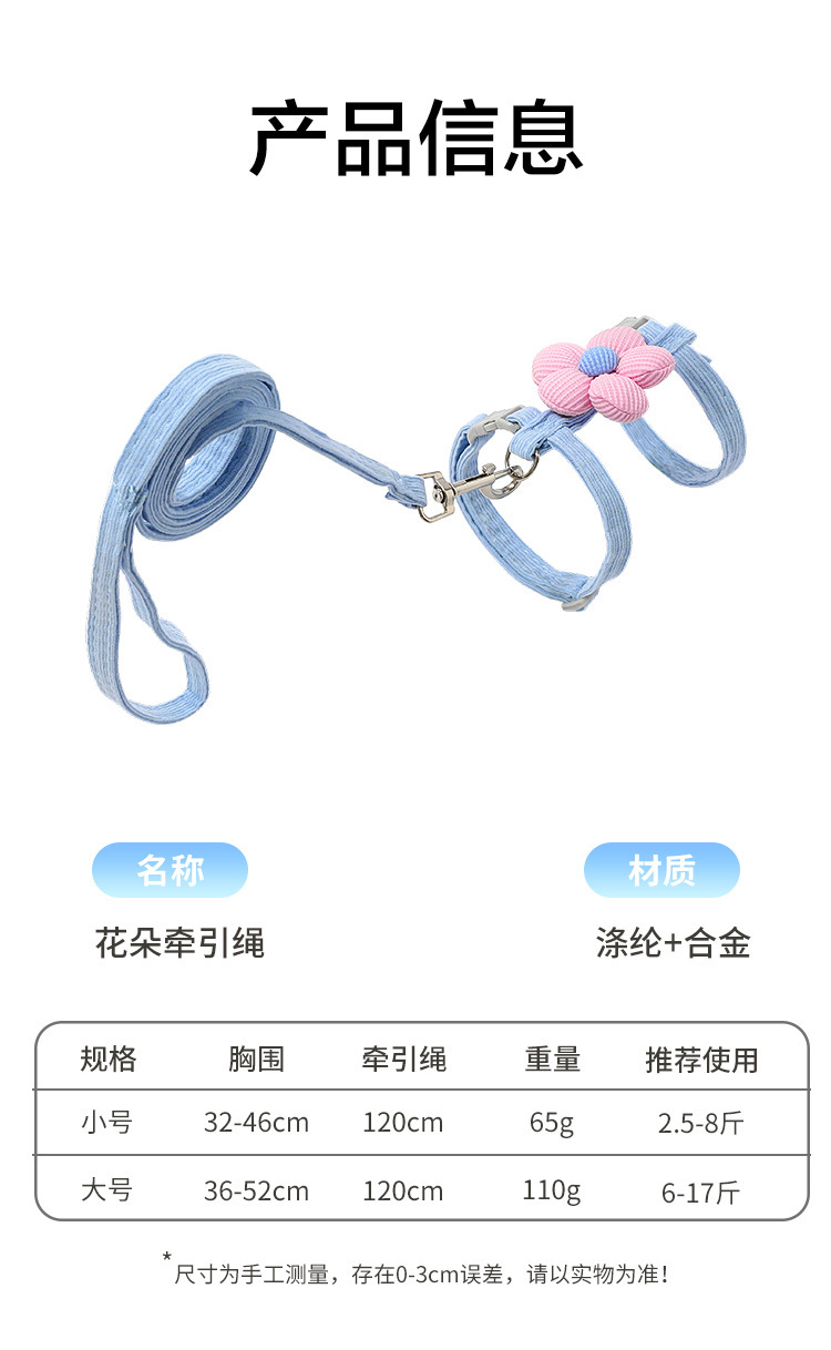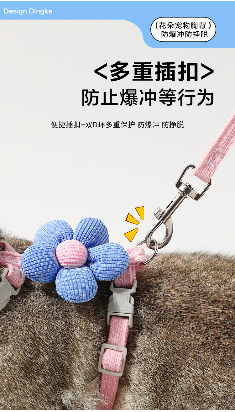 Flores para gatos, cuerda de tracción para mascotas en forma de I, cuerda de tracción para perros pequeños, cuerda de tracción para gatos para caminar