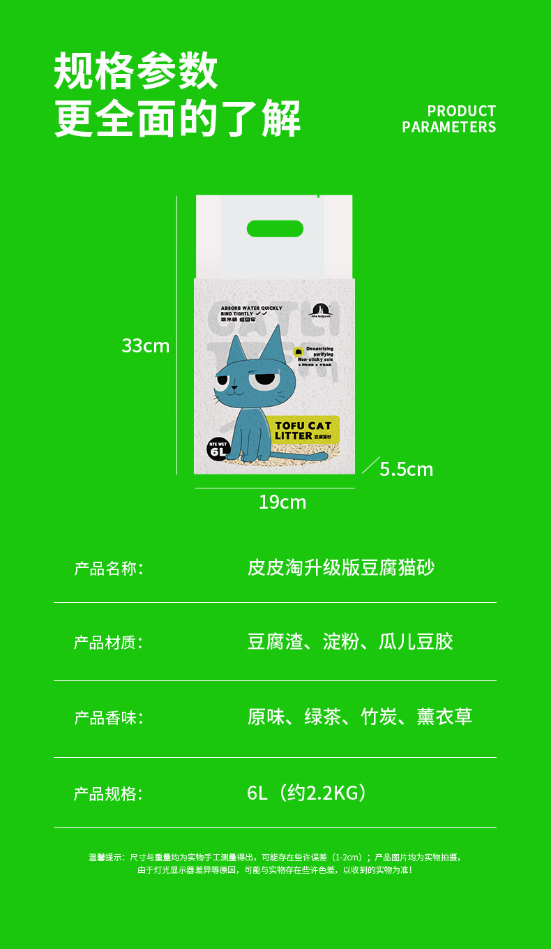 | Especificaciones | Arena para gatos de tofu puro-sabor original,Sabor puro tofu arena para gatos-lavanda,Sabor puro de carbón de bambú y arena para gatos con tofu,Puro tofu arena para gatos-té verde,Tofu arena y bentonita-sabor original,Sabor a carbón de bambú con arena de tofu y bentonita |