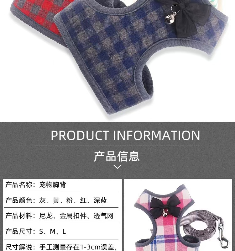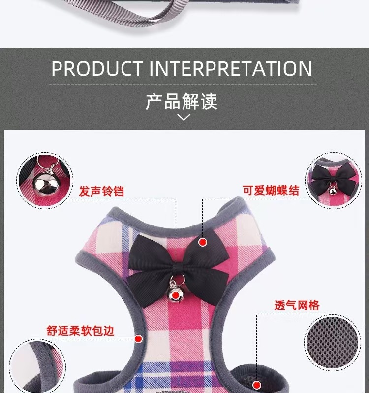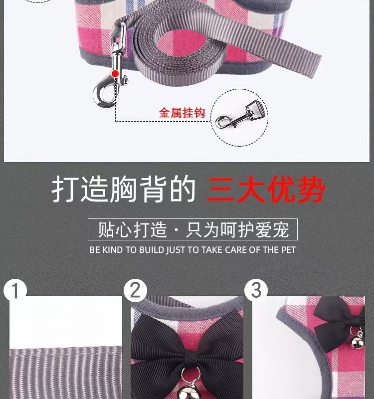 Chaleco tipo cinturón de pecho para mascotas nuevo anti-desprendimiento de la cuerda de tracción para gatos Teddy mascotas cuadrillas de pecho de fábrica directa