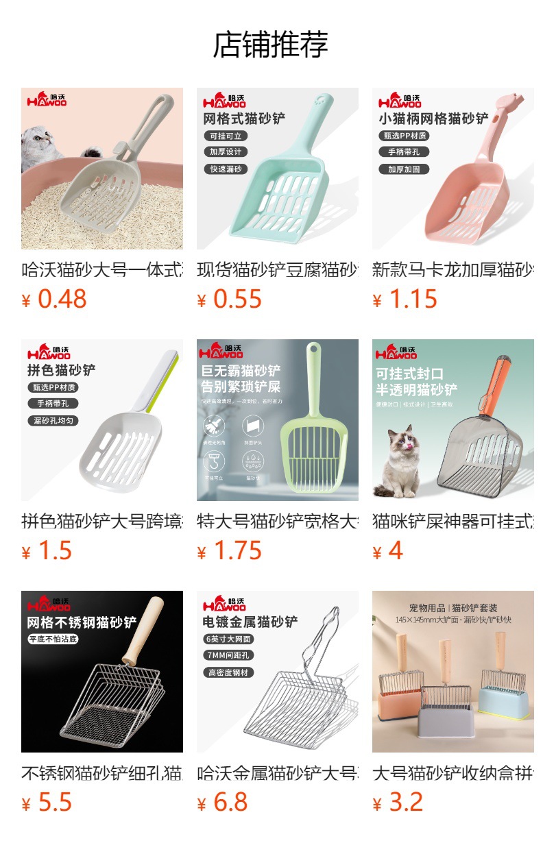 Agente al por mayor nuevo estilo gato arena pala mango largo gato mierda pala inodoro gato arena pala simple