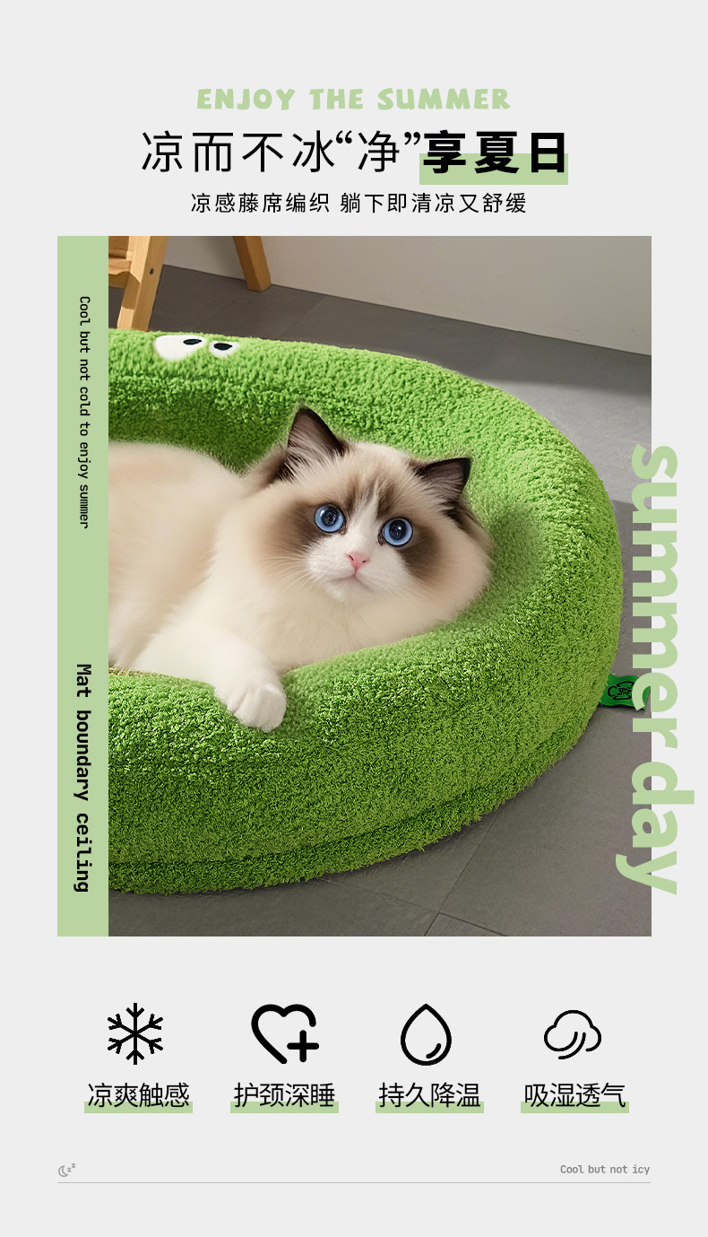 Bordado de ojos grandes, linda alfombra para mascotas, nido para gatos ovalado, nido de verano, perrera para dormir, alfombra de hielo para gatos, transfronterizo