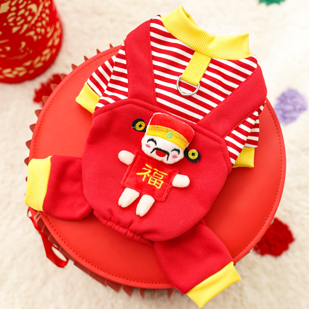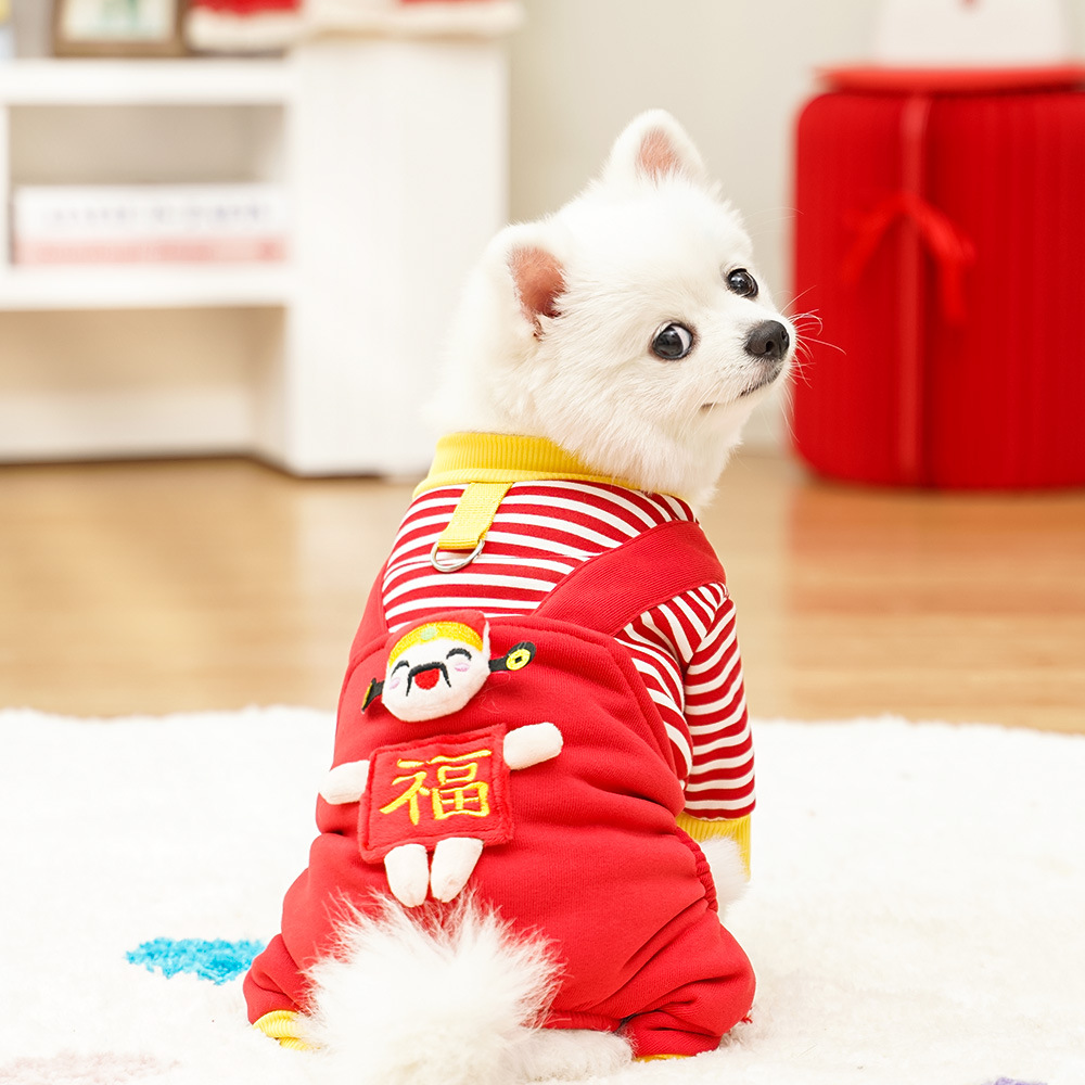Ropa de perros de mascotas para gatos de otoño y invierno con camisa de pelusa para perros rayas de tamaño medio Corgi Fa斗 puede traer artículos para gatos