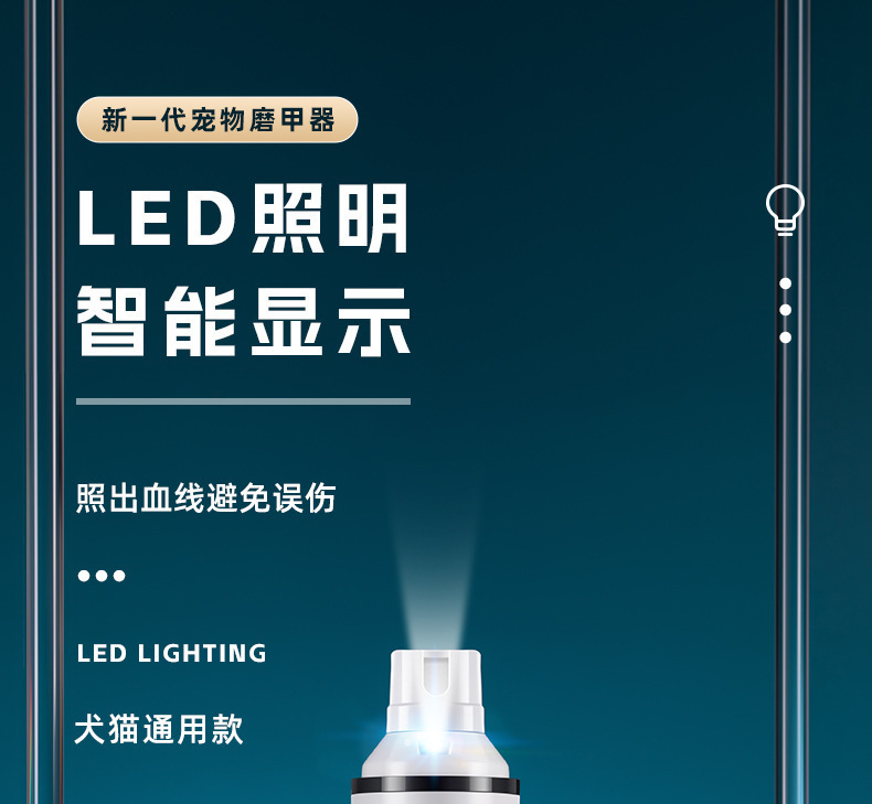 2024 nueva actualización de amolador de uñas para mascotas transfronterizas para lámpara LED recargable para amolador de uñas para perros y gatos