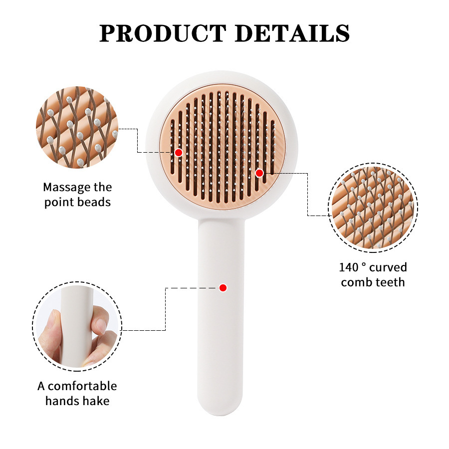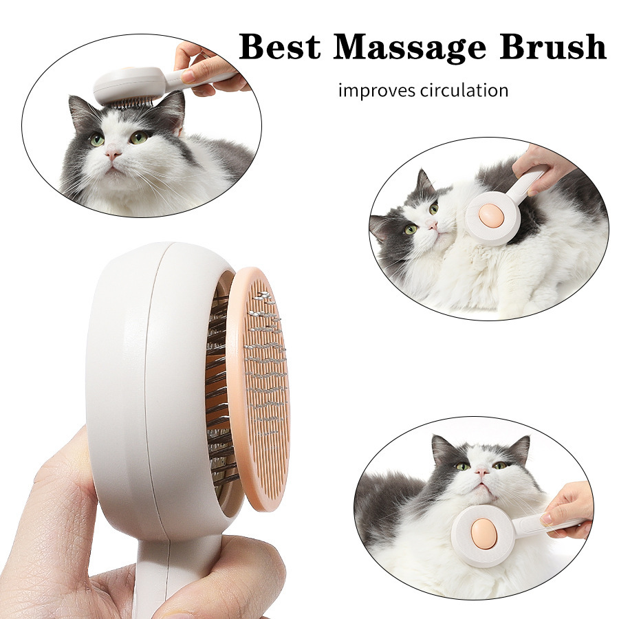 Nuevo peine de mascotas gato acero inoxidable pin de masaje de acero flotante cepillo de depilación de un botón pein de depilación de perros