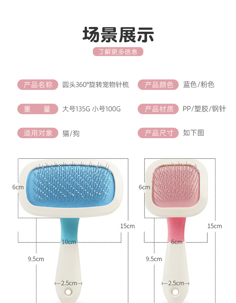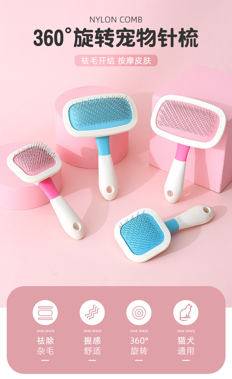 Hawo peine de limpieza de pelo de perro peine de aguja giratorio de 360 ° práctico peine de belleza de cabeza protectora de doble capa peine para mascotas al por mayor