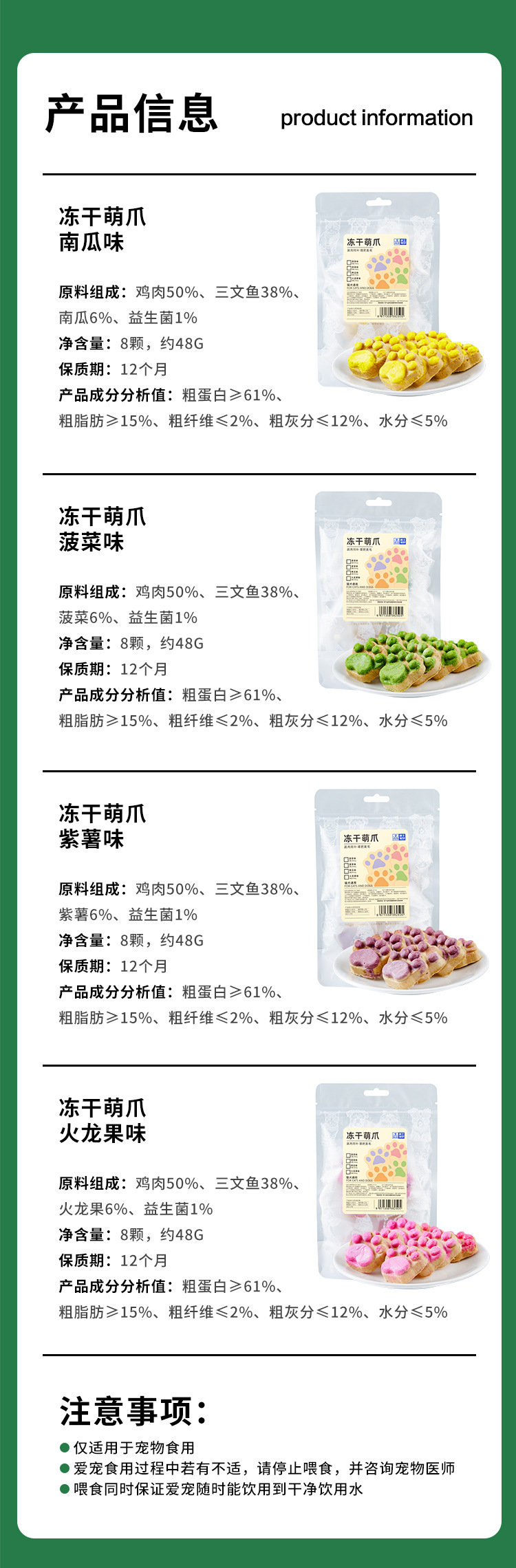| Número de artículo | Lianmeng - Pastel de carne liofilizado con garras lindas |