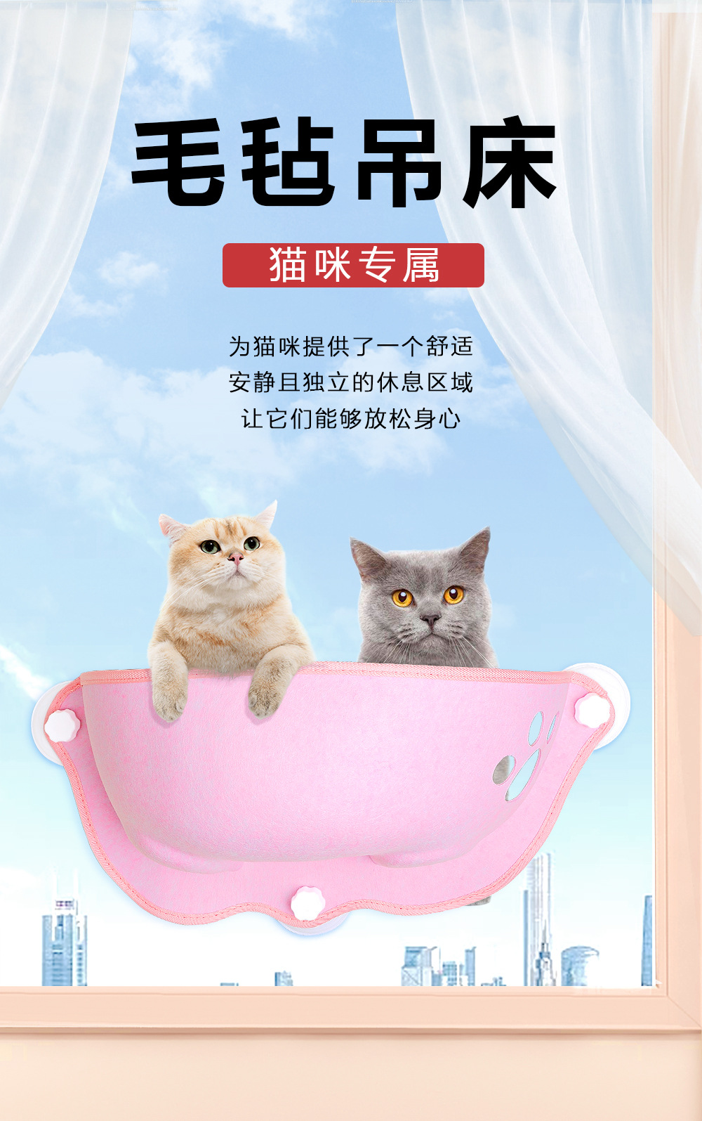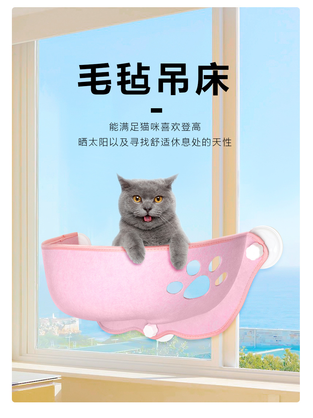 Comercio exterior nuevo fello gato hamaca crescente ventosa colgante desmontable ventana colgar nido sol gato nido