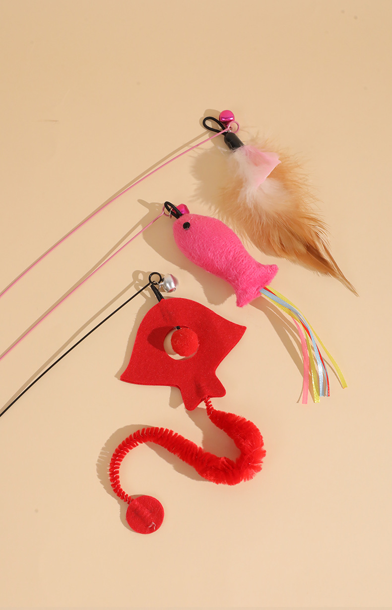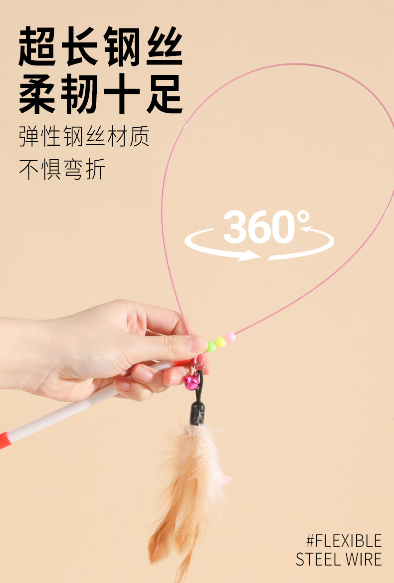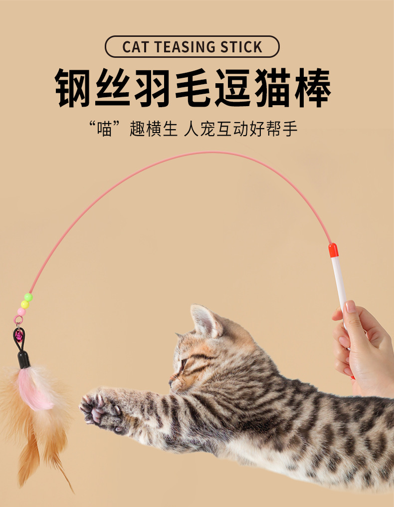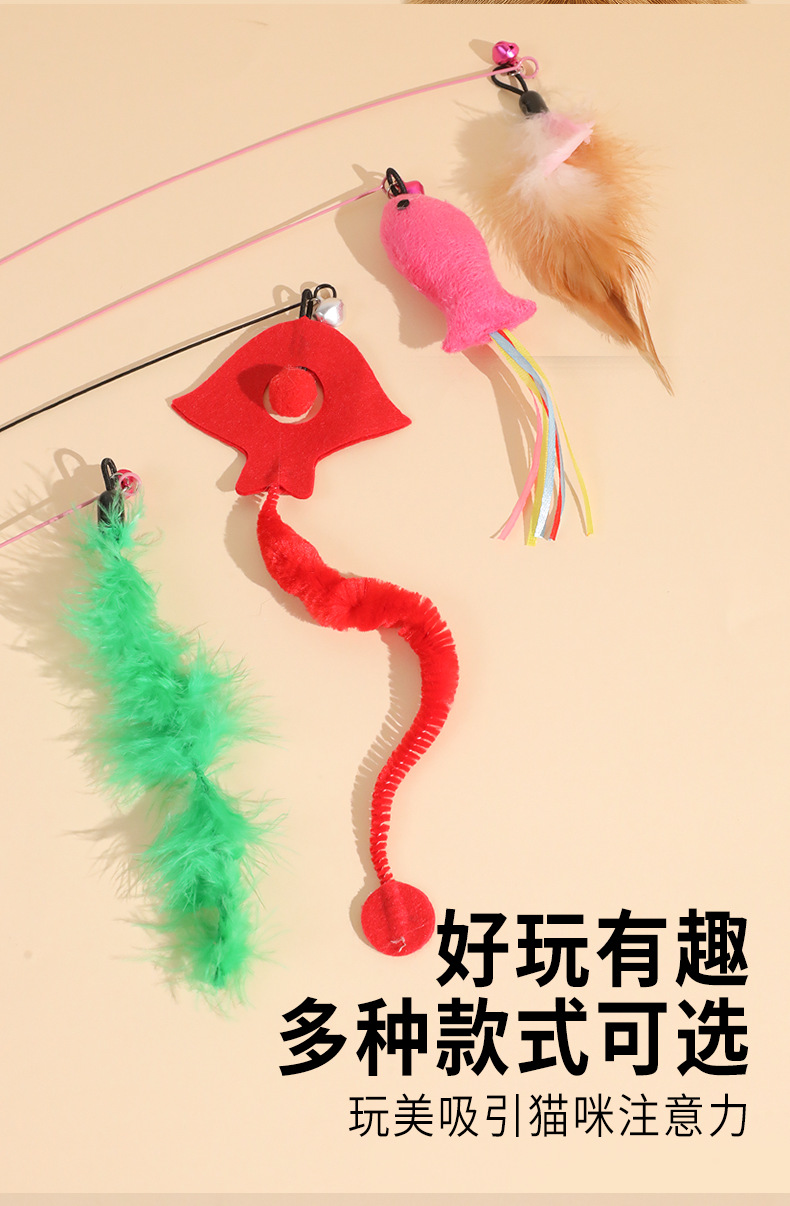 Venta directa de fábrica de varita de alambre de acero para estimular gatos con cabeza reemplazable, varita con cascabel para aliviar el aburrimiento de los gatos, juguete para gatos al por mayor.