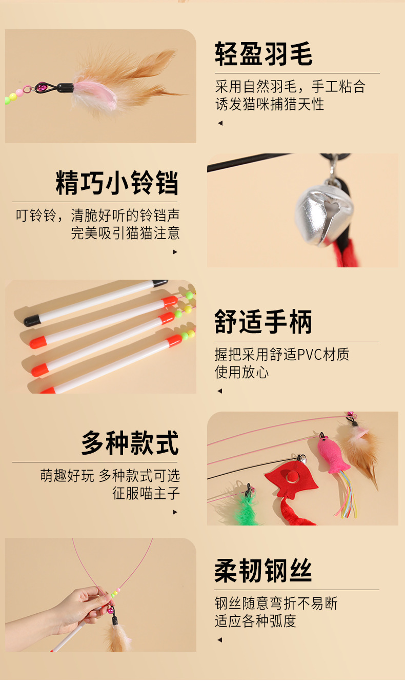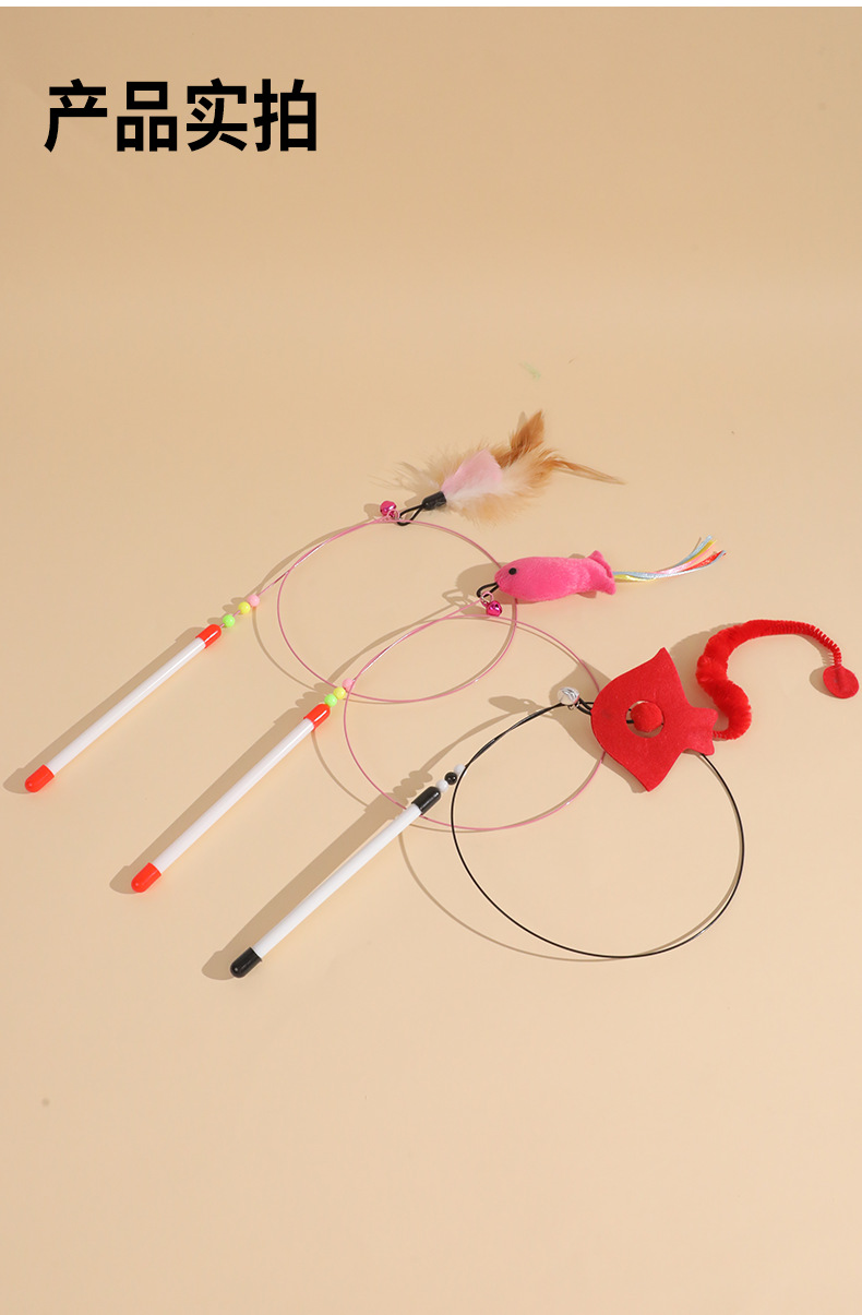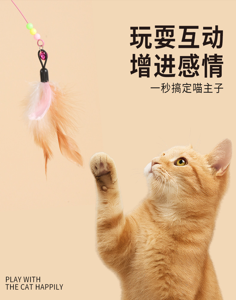 Venta directa de fábrica de varita de alambre de acero para estimular gatos con cabeza reemplazable, varita con cascabel para aliviar el aburrimiento de los gatos, juguete para gatos al por mayor.