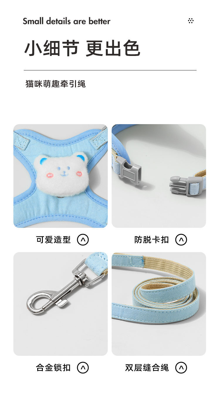 Cable de tracción para gatos para evitar que se desprenda, cinturón de pecho tipo chaleco para gatos, cuerda de paseo para gatos para perros pequeños, cuerda de paseo para gatos para evitar correr