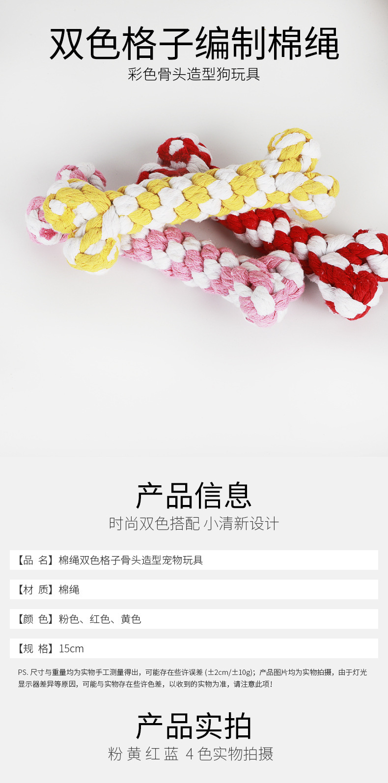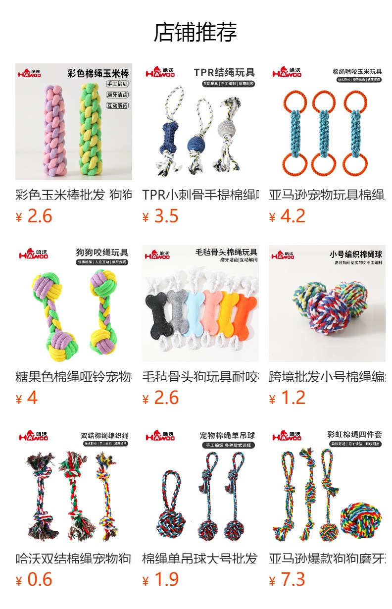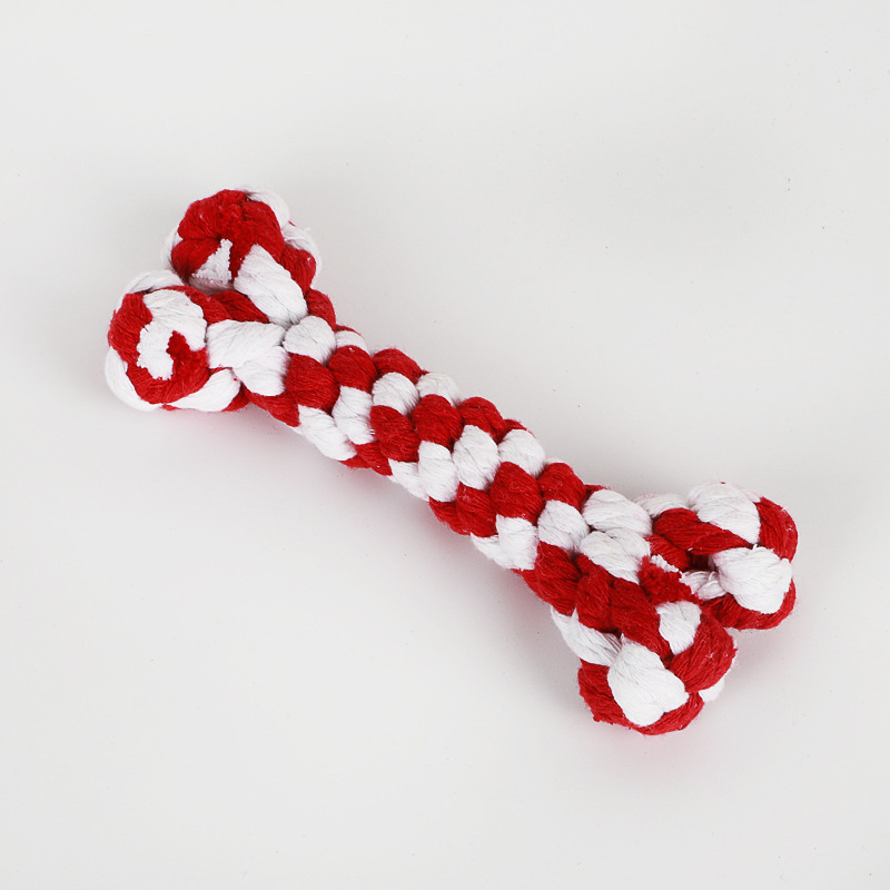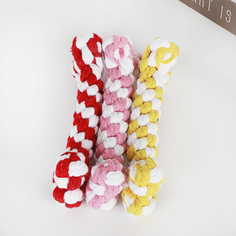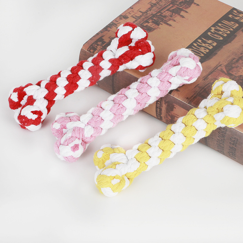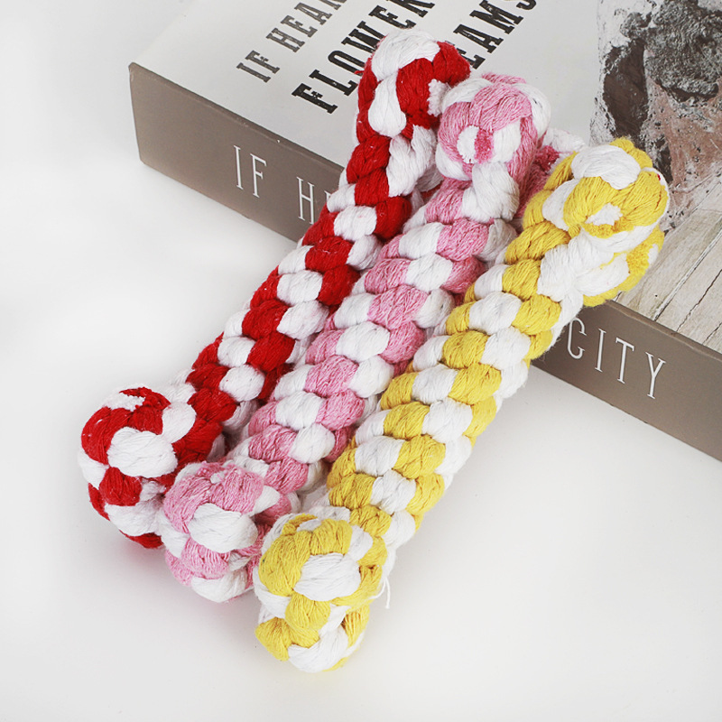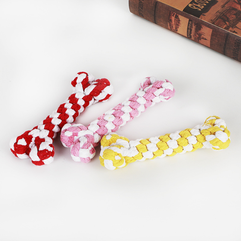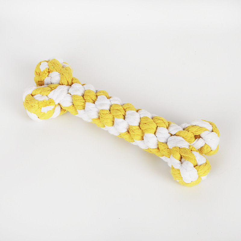 Amazon nudo tejido a mano cuerda de algodón de color hueso perro de juguete perro nudo cuerda transfronteriza suministros para mascotas al por mayor