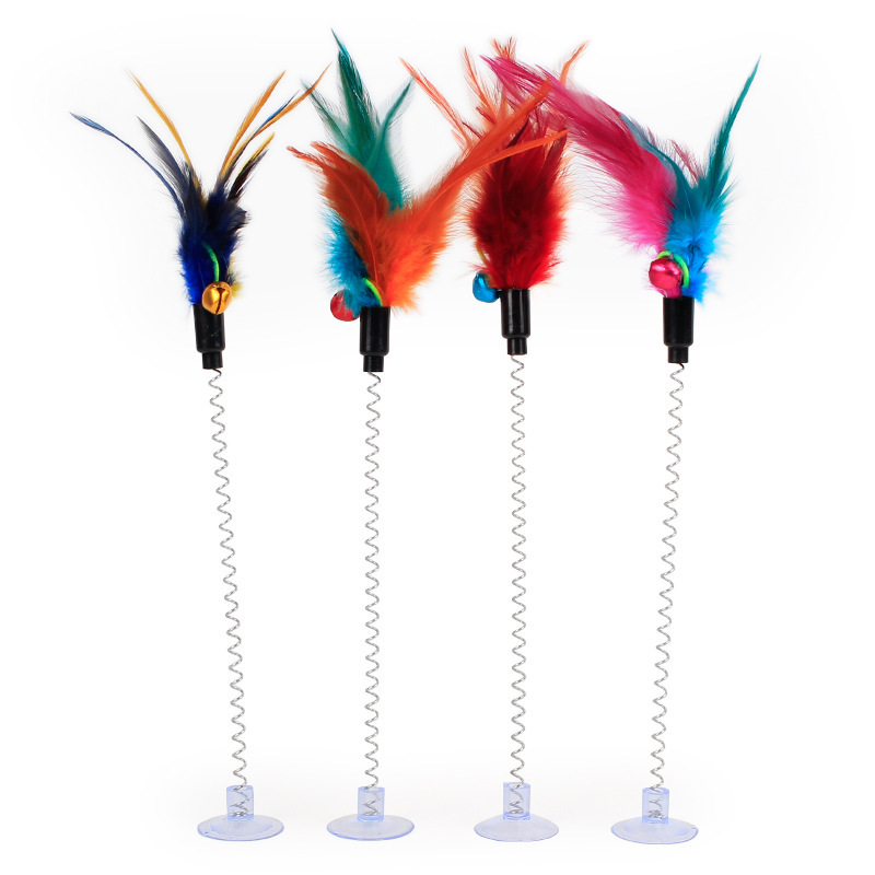Cross-border colorido primavera felpa lechón ratón pluma divertido gato juguete con Bell interactivo gato juguete al por mayor