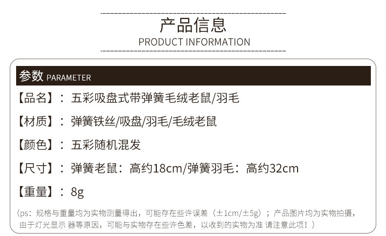 | Color | Ratón de primavera 18cm,Pluma de primavera 32cm |