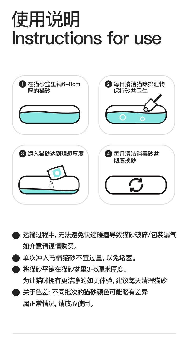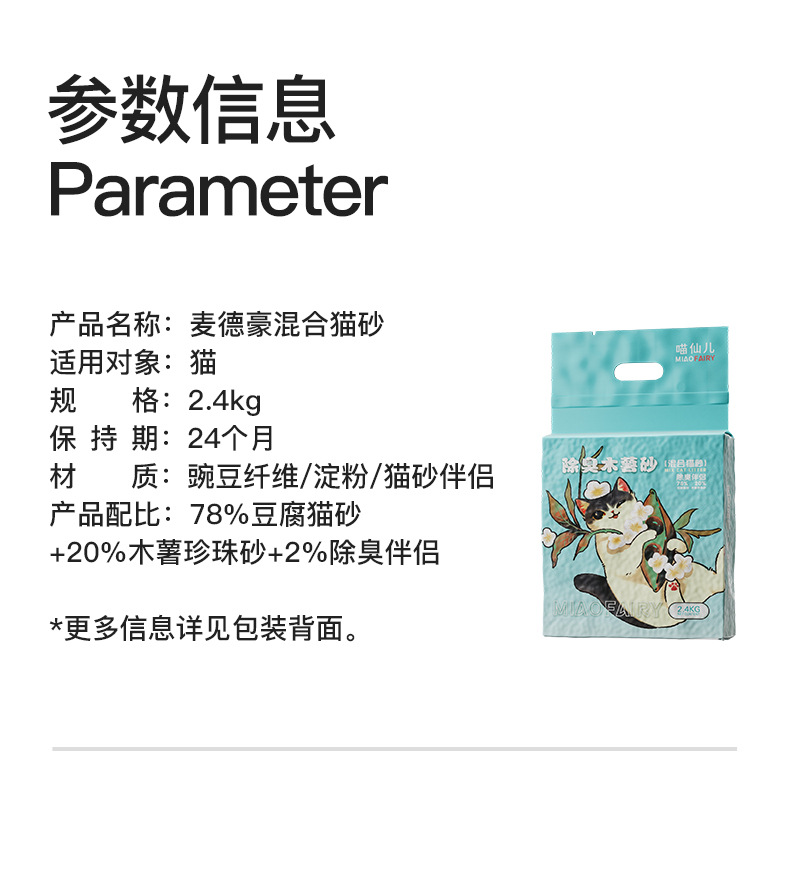 | Especificaciones | Arena para gatos mezclada con yuca |