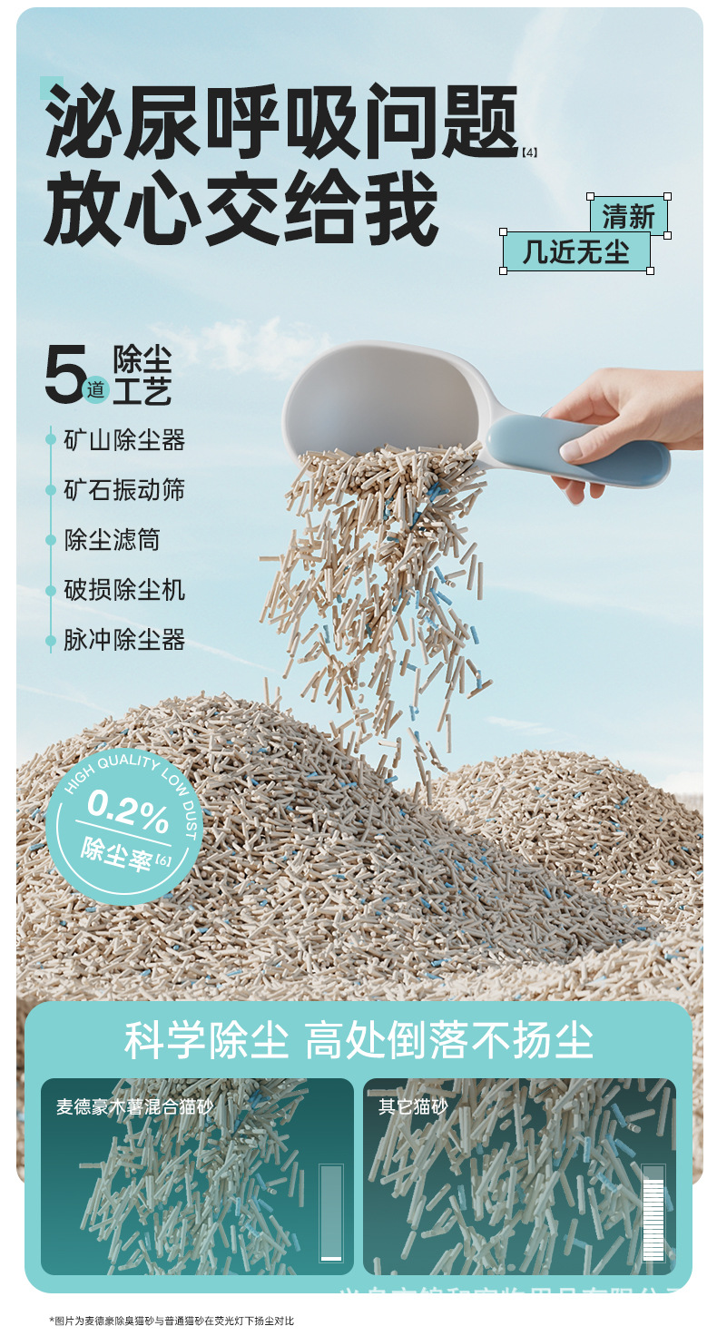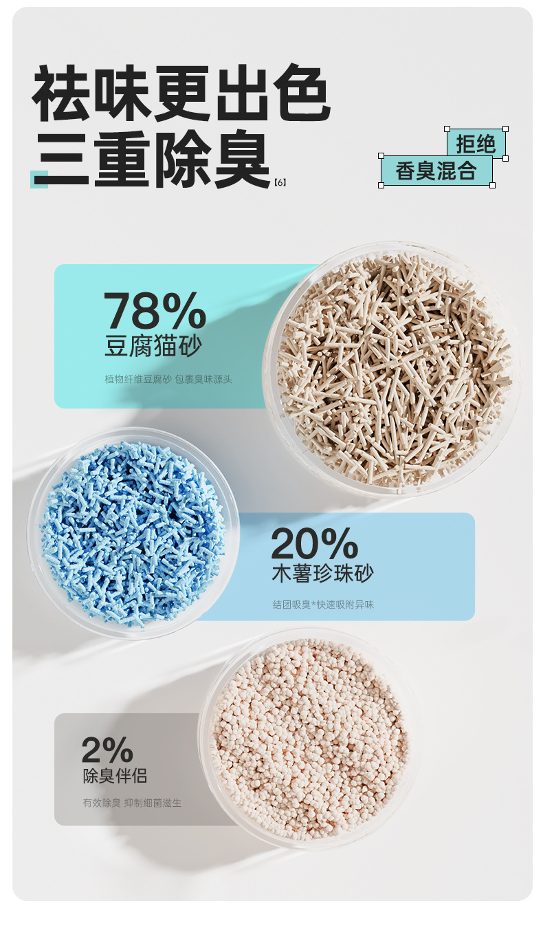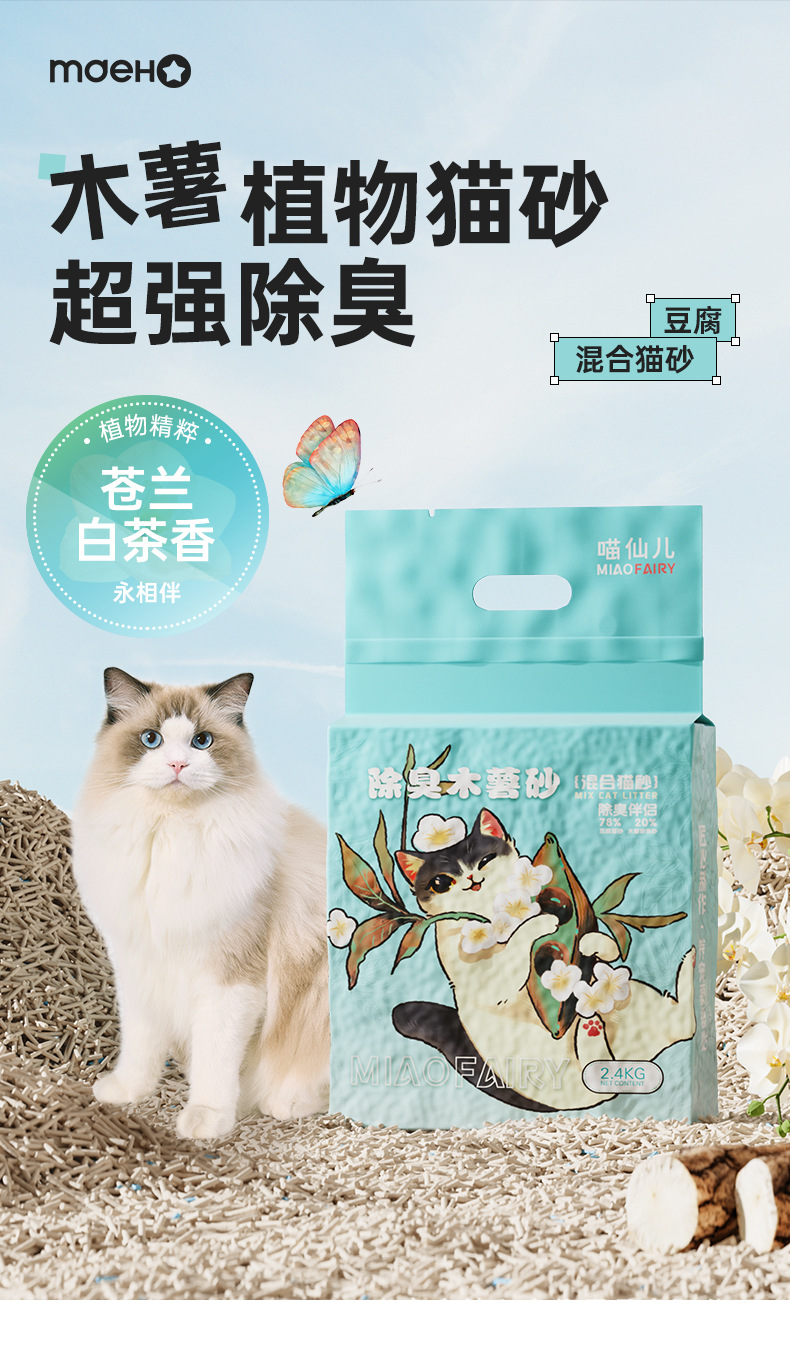 Nueva arena para gatos mixta de yuca, arena para gatos de yuca, desodorización de grupos bajos en polvo, productos de limpieza al por mayor 2.4kg