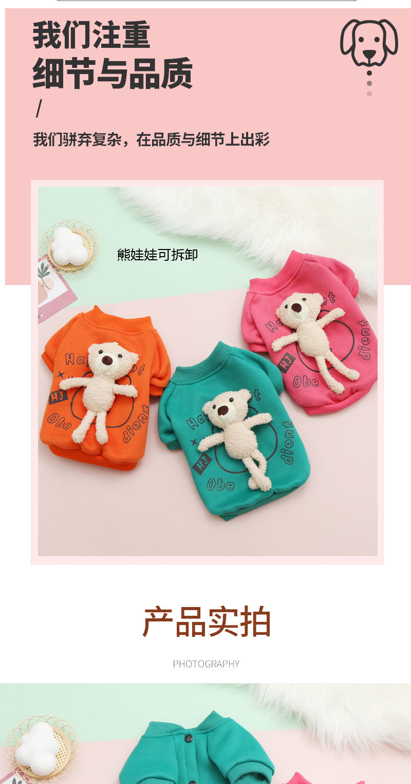 Ropa de mascotas, ropa de perro, ropa reflectante, camisetas de oso, ropa de algodón de otoño y invierno, artículos para perros pequeños, al por mayor
