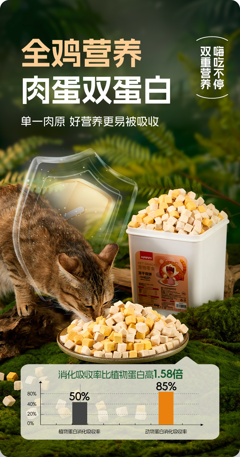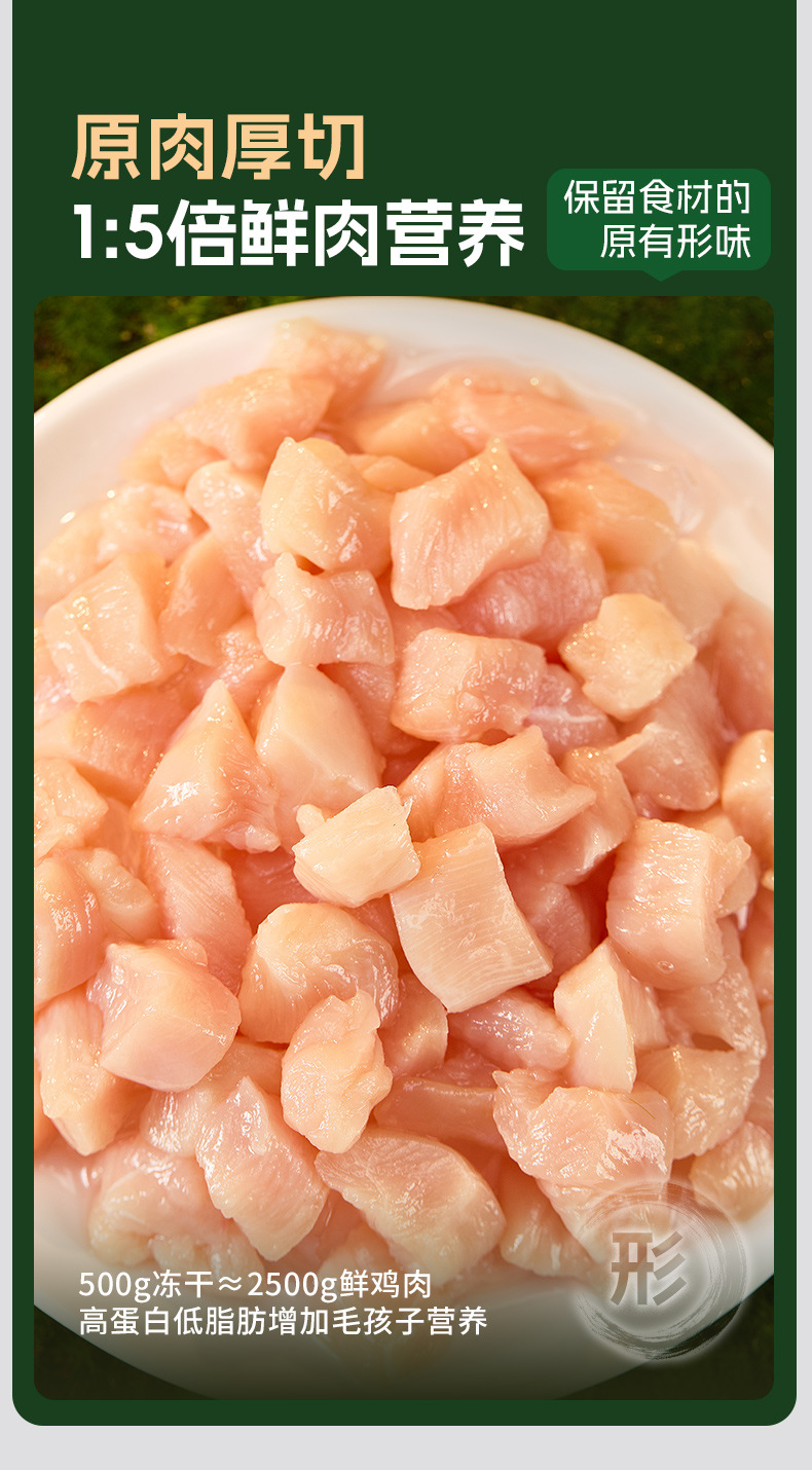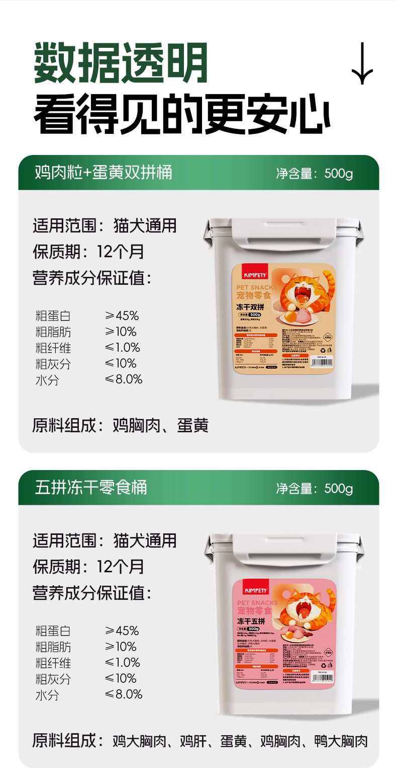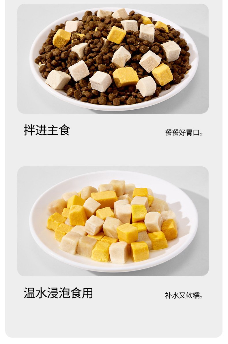 Nuevo pollo liofilizado de alta calidad, cubitos de pollo, yema de huevo, cubo familiar de doble pelea, bocadillos para gatos jóvenes 500g/barril