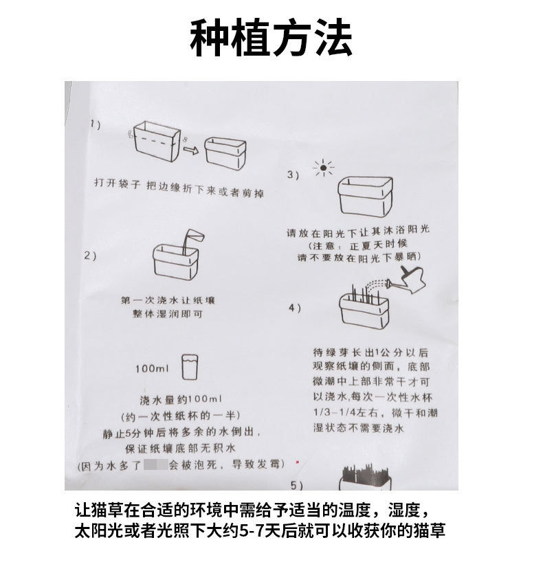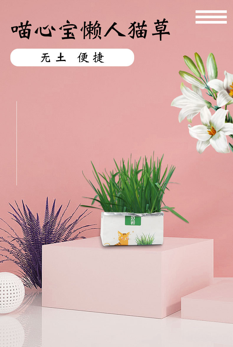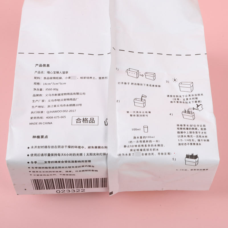 Fabricante mayorista perezoso sin suelo hidropónico gato hierba papel de estanque carga paquete de semillas gato aliento fresco bolas de pelo bocadillos