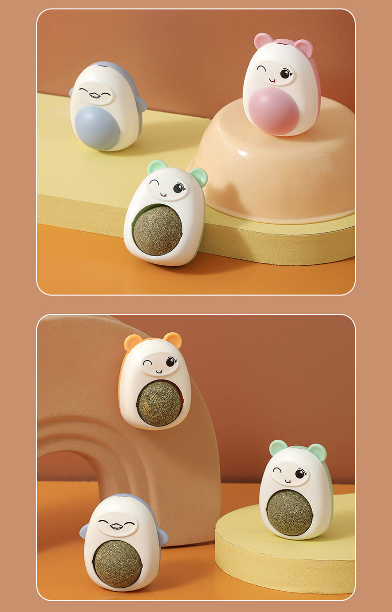 Bolas de menta para gatos rotativas de dibujos animados para gatos adultos, gatos jóvenes, dientes de molienda, dientes de limpieza de pelo, bolas de hierba para gatos al por mayor