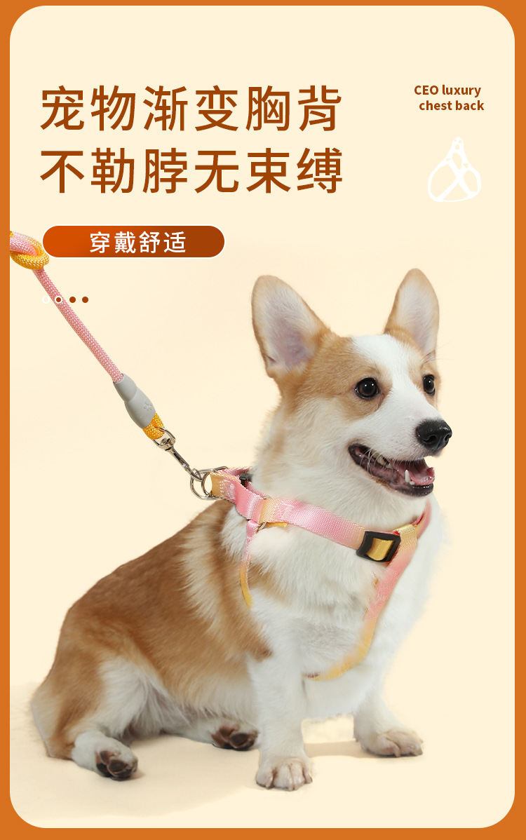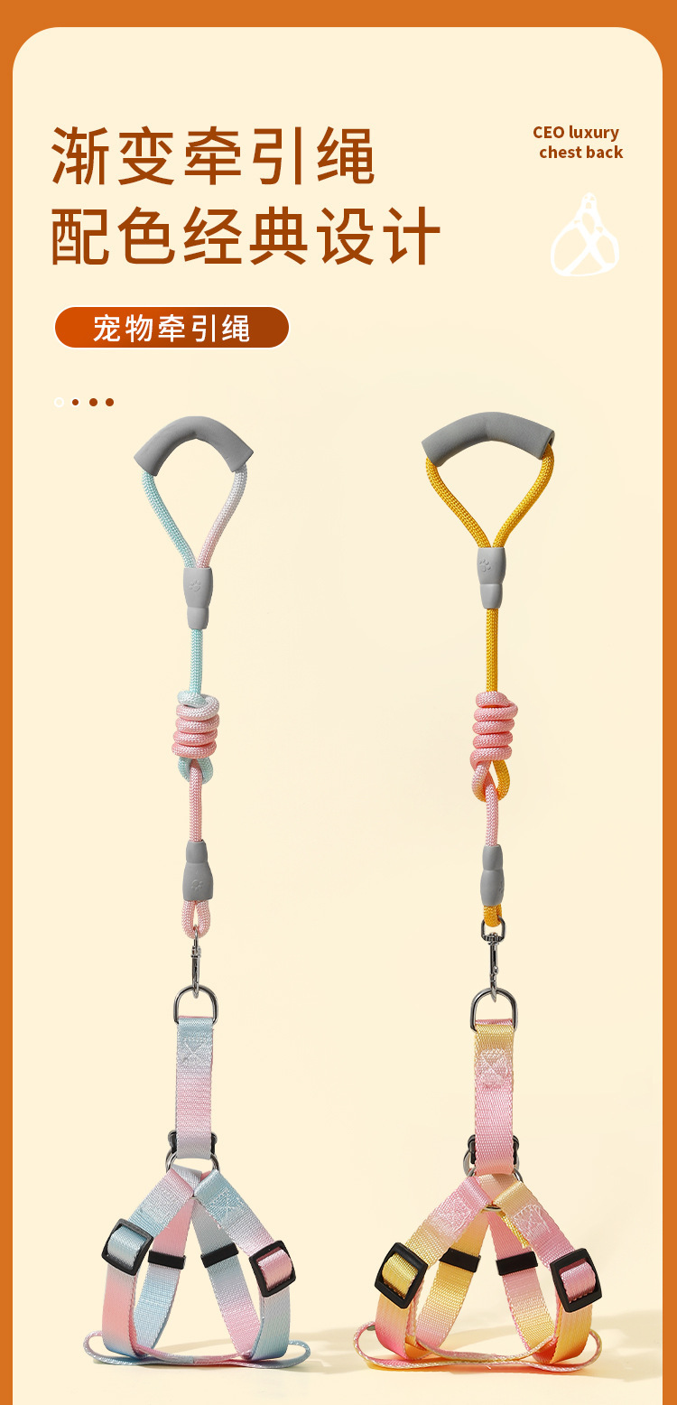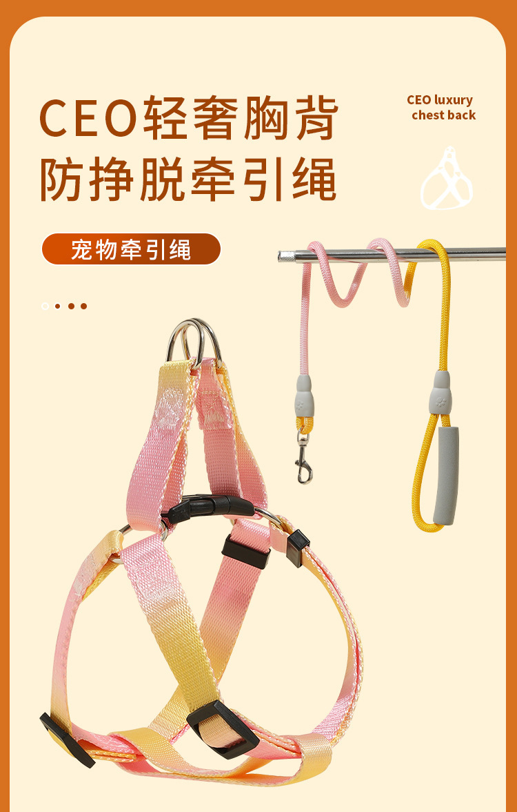 Cuerdas de tracción coloridas transfronterizas para perros con cinturón de pecho graduado para mascotas, cuerda de perro para caminar, cuerda de perro anti-desprendimiento para mascotas
