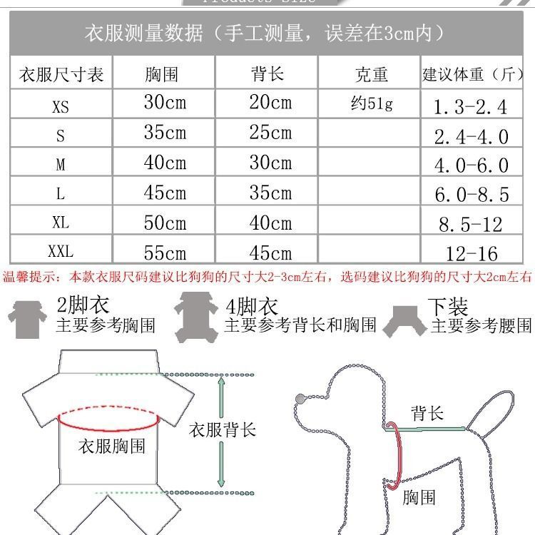 | Talla | XS (busto 30cm peso recomendado 1.3-2.4 kg),XL (busto 50cm peso recomendado 8.5-12 kg) |