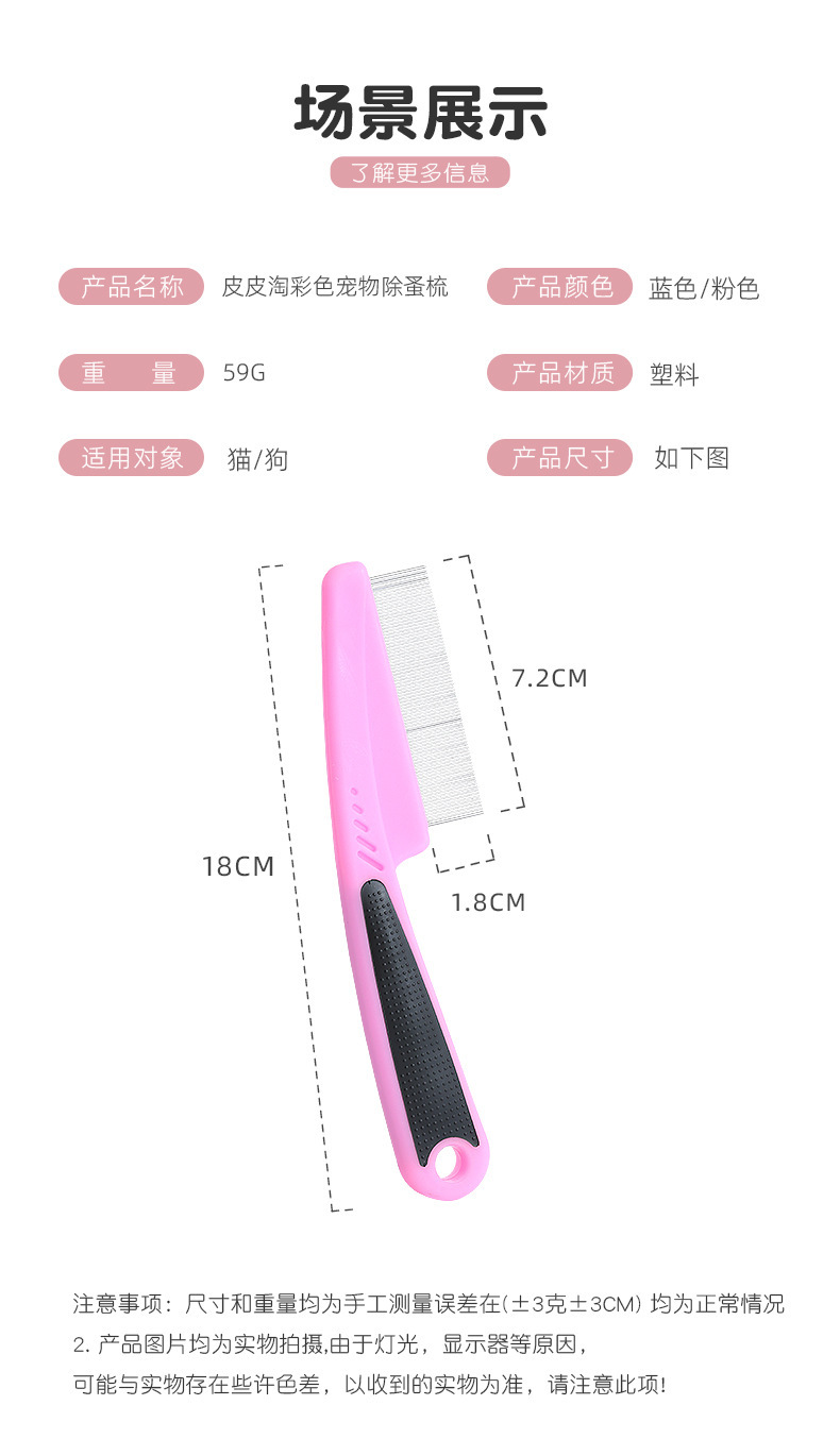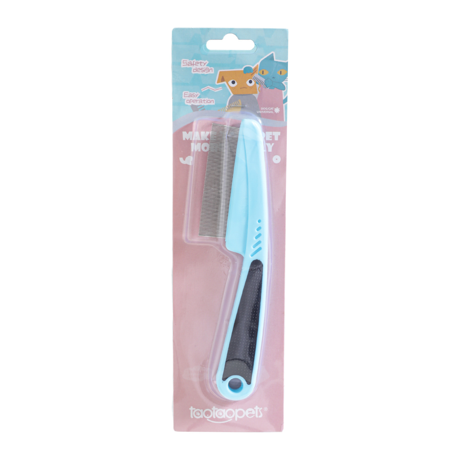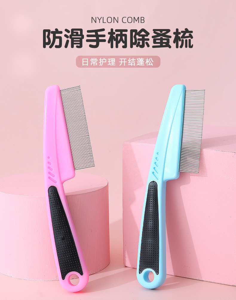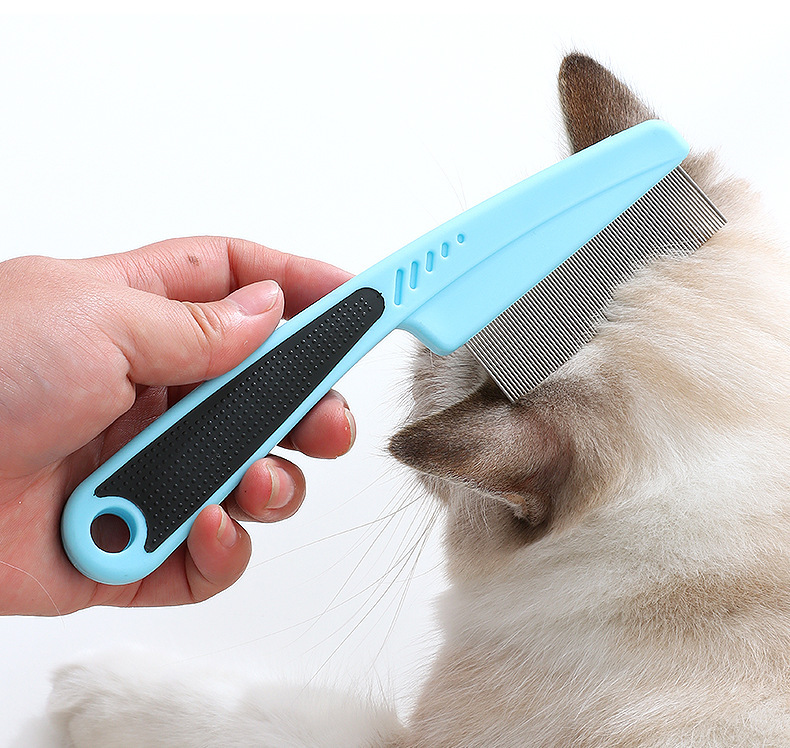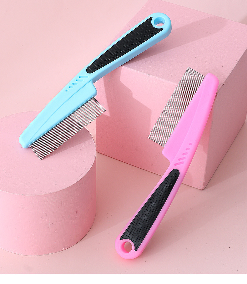 Nuevo producto mango antideslizante peine de pulgas cepillo de acero inoxidable peine de aguja de dientes densos peine de pelo flotante para perros peine para mascotas al por mayor