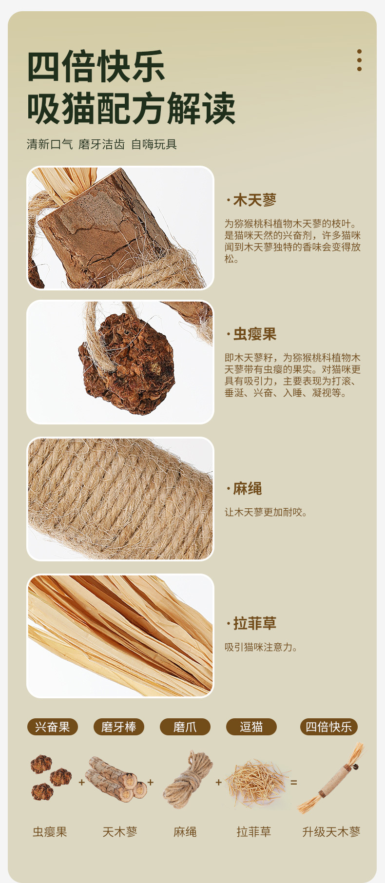 Nuevo gato de juguete Polygonum multiflorum palo con insecto Gall fruta varilla mordedura combinación molar limpieza dental remoción fresco aliento