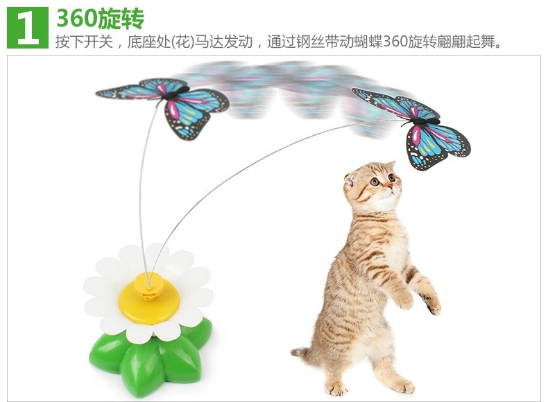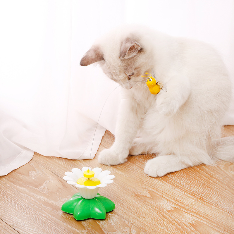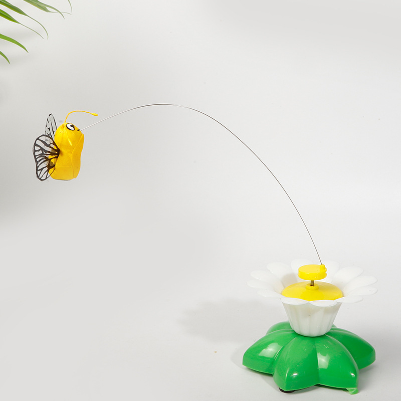 Pájaro volador eléctrico gato juguete mariposa girando alrededor de flores automático divertido gato juguete mascota gato suministros al por mayor