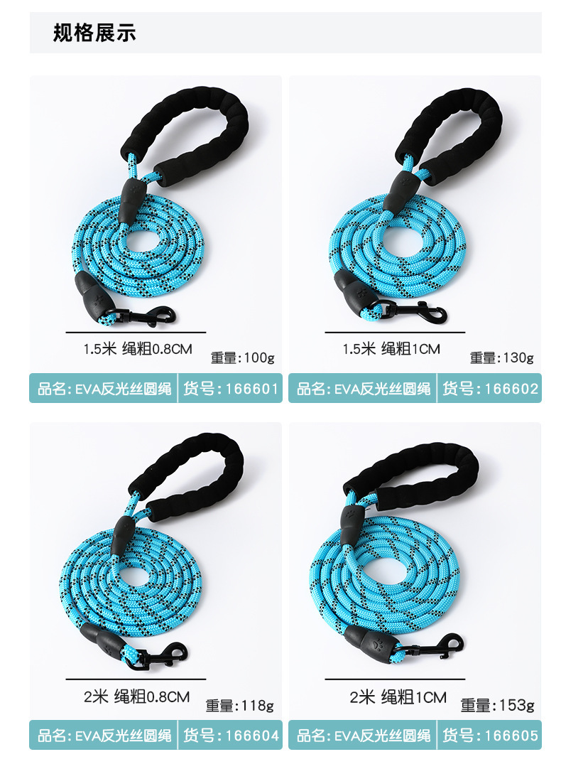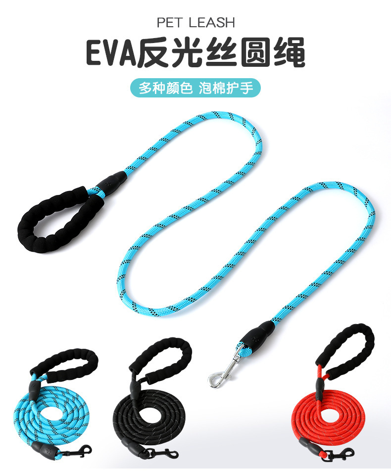 Bolsa 1,5 m EVA de seda reflectante cuerda redonda resistente al desgaste cuerda de perro a prueba de explosiones correa de perro suministros para mascotas