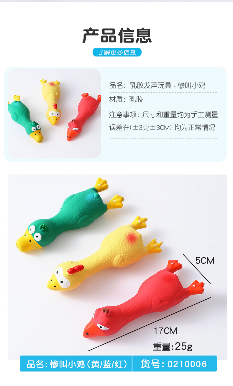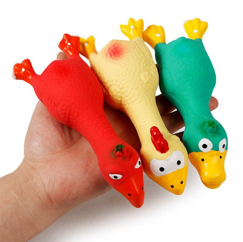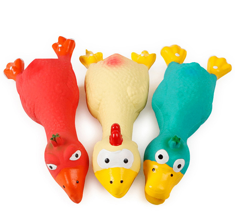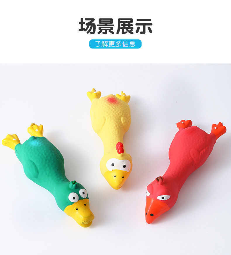 Fabricante de juguetes chirriantes de pollo de látex para perros, venta directa, juguete para mascotas resistente a las mordidas, juguete para limpiar los dientes con sonido de pollo gritón, venta al por mayor.