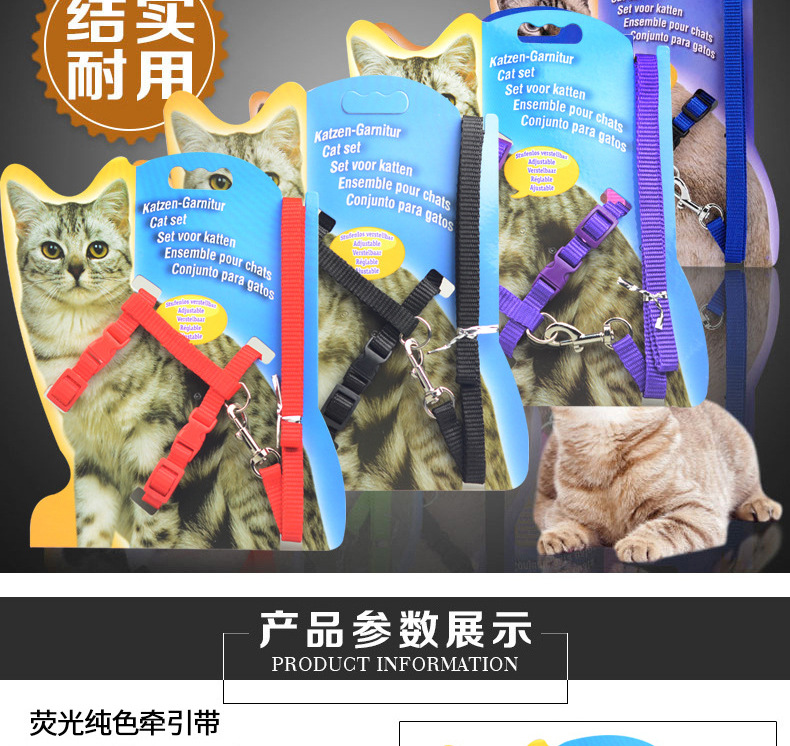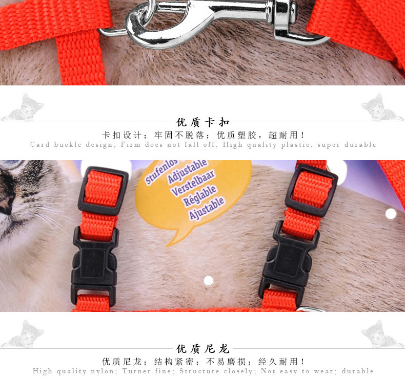 Correa de gato correa de nylon en forma de I correa de pecho duradera correa de cadena de gato correa de gato al por mayor