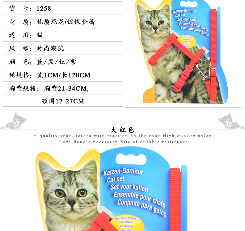 | Color | Correa para gato-Azul,Correa de Gato-Negro,Correa de Gato-Rojo,Correa de gato-púrpura,Correa de gato-rosa |