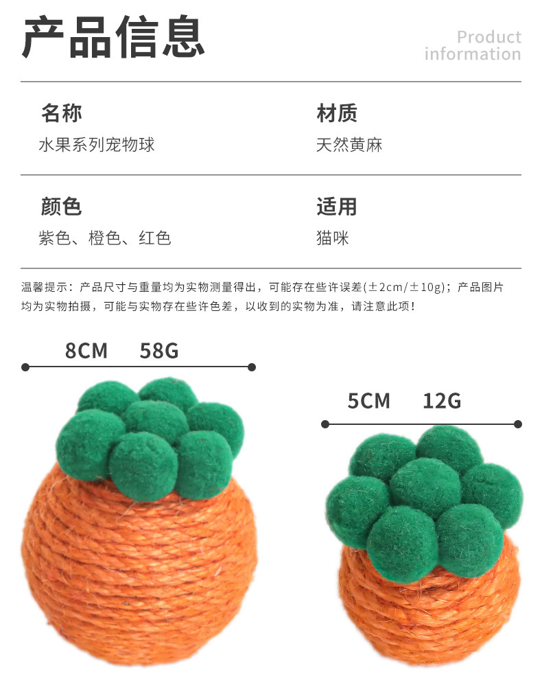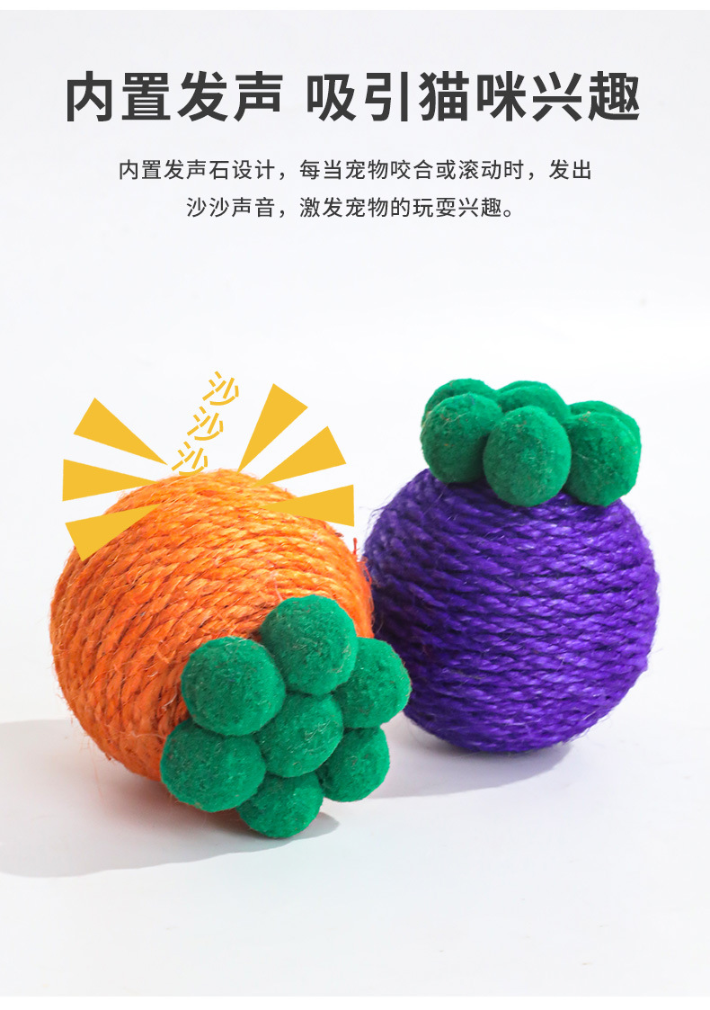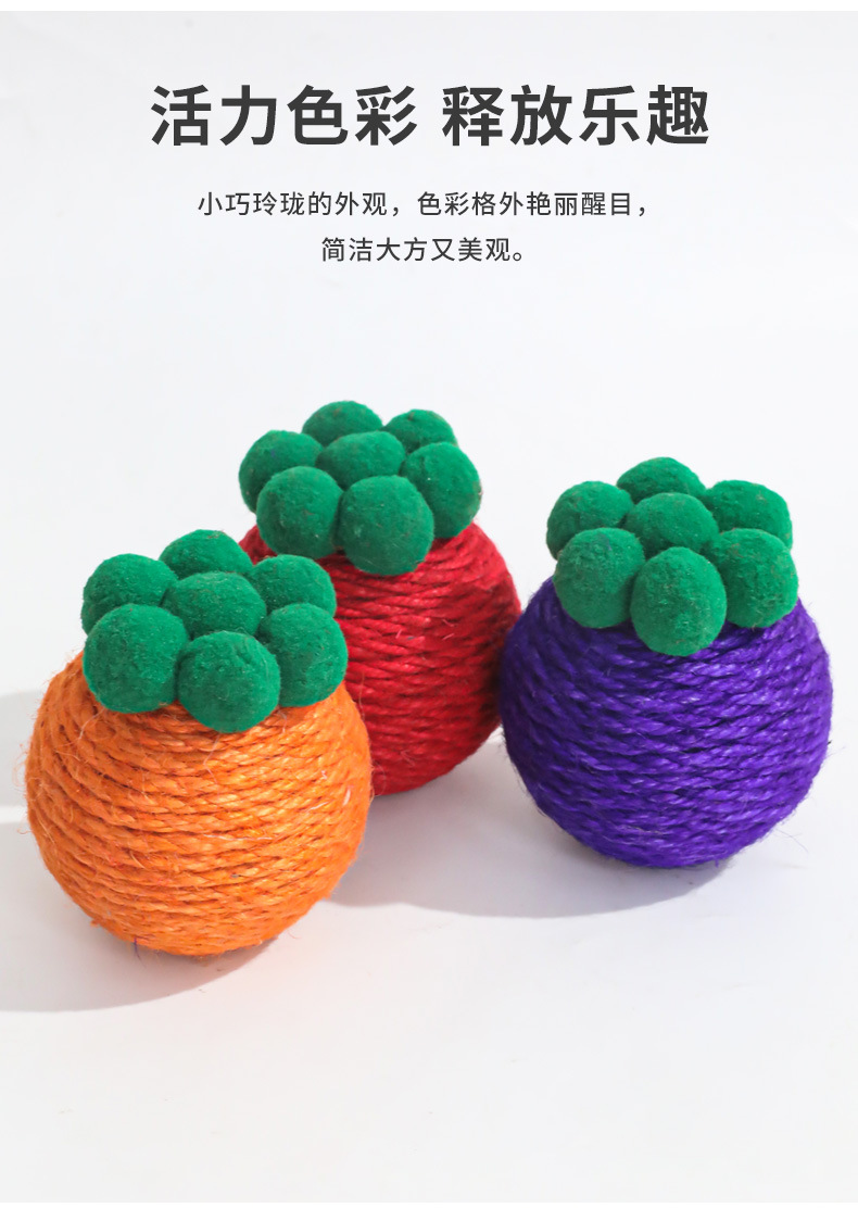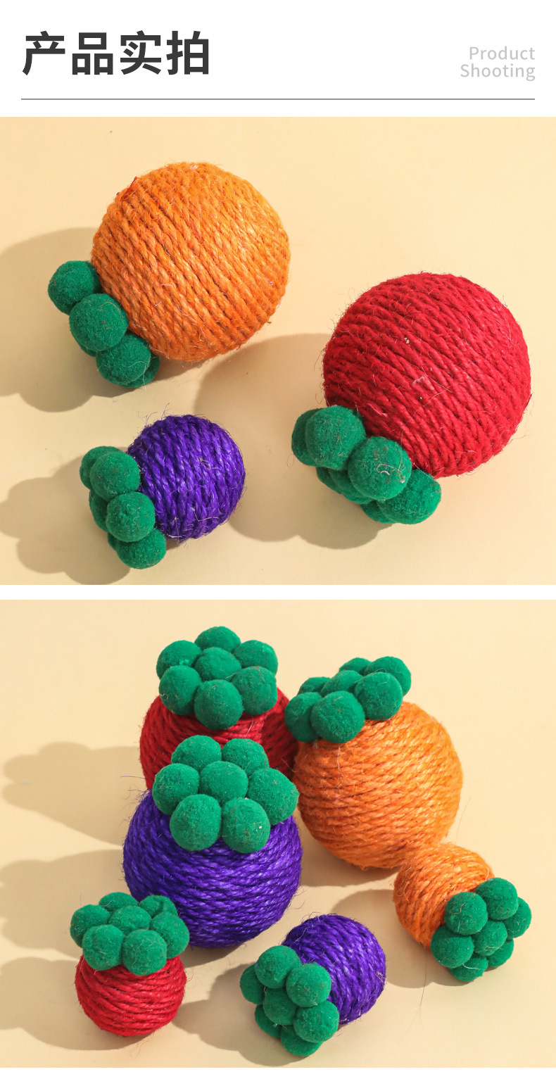 Juguetes para gatos para aliviar el aburrimiento de la serie de frutas, bolas de yute, garras de molienda sin caspas, tejer sonido, bolas de juguete para gatos.